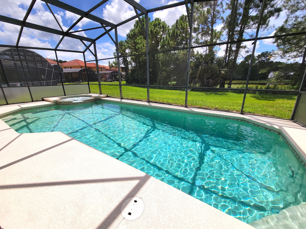 Gorgeous 3 bedroom, 2-bathroom villa set on a 1/4 acre of land, with our own screened, private, heated swimming pool & Jacuzzi, and high speed internet. Situated in a quiet residential community on the sought after Sunridge Woods in Davenport, only 9 miles from Disney. Please note smoking or parties are NOT allowed in house premises. No pool heater available during May through October. **You also MUST be 21 or older to rent this property**
