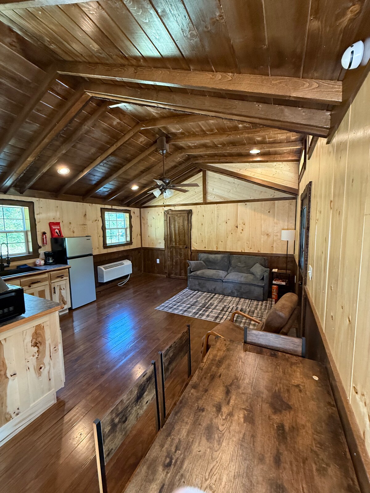 Nuestra cabaña fue originalmente la barbería aquí en Warriors Mark. Eventualmente se convirtió en un departamento eficiente. Renové completamente la cabaña durante el verano de 2024. El espacio es muy cómodo y acogedor con todo lo necesario para hacer que tu estancia sea agradable. El espacio es perfecto para una pareja. El sofá de dos plazas se convierte fácilmente en una cama de tamaño completo de 51x72 pulgadas. Es cómoda para un adulto o 2 niños. Cerca de la pesca: Little Juniata, Spruce Creek, Raystown Lake.