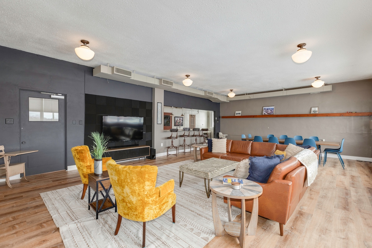 Con más de 5000 pies cuadrados de espacio actualizado que incluye suelos con calefacción y suites para huéspedes, experimenta la histórica PS House. Relájate en el jacuzzi o en la cubierta con vistas al patio cerrado después de un largo día. Pasea hasta la famosa escena musical de blues de STL, la galardonada barbacoa y los autobuses gratuitos a los juegos de Cards/Blues, todo a menos de 5 minutos a pie. En la mesa de comedor para 12 personas, comparte comidas cocinadas con ingredientes frescos del mercado de agricultores cercano o comparte ideas con colegas en la pantalla de 80 pulgadas. ¡Pregunta hoy!