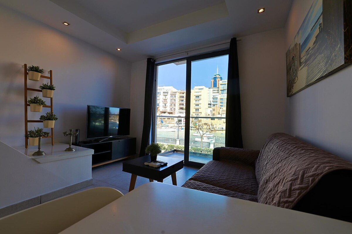 Hermoso apartamento de 3 dormitorios y 2 baños (cuarto piso). Tiene una vista excepcional de la bahía de Spinola, con sus características de coloridos barcos de pesca y los restaurantes bellamente iluminados hacen que la vista sea única. Muy céntrico, a poca distancia de todo lo que necesitas; restaurantes, cafeterías, paradas de autobús, playas y vida nocturna. Dicho esto, el departamento es muy tranquilo y no escucharías ningún ruido. Este apartamento está totalmente climatizado, tiene wifi gratuito, televisor inteligente, lavavajillas y lavadora.