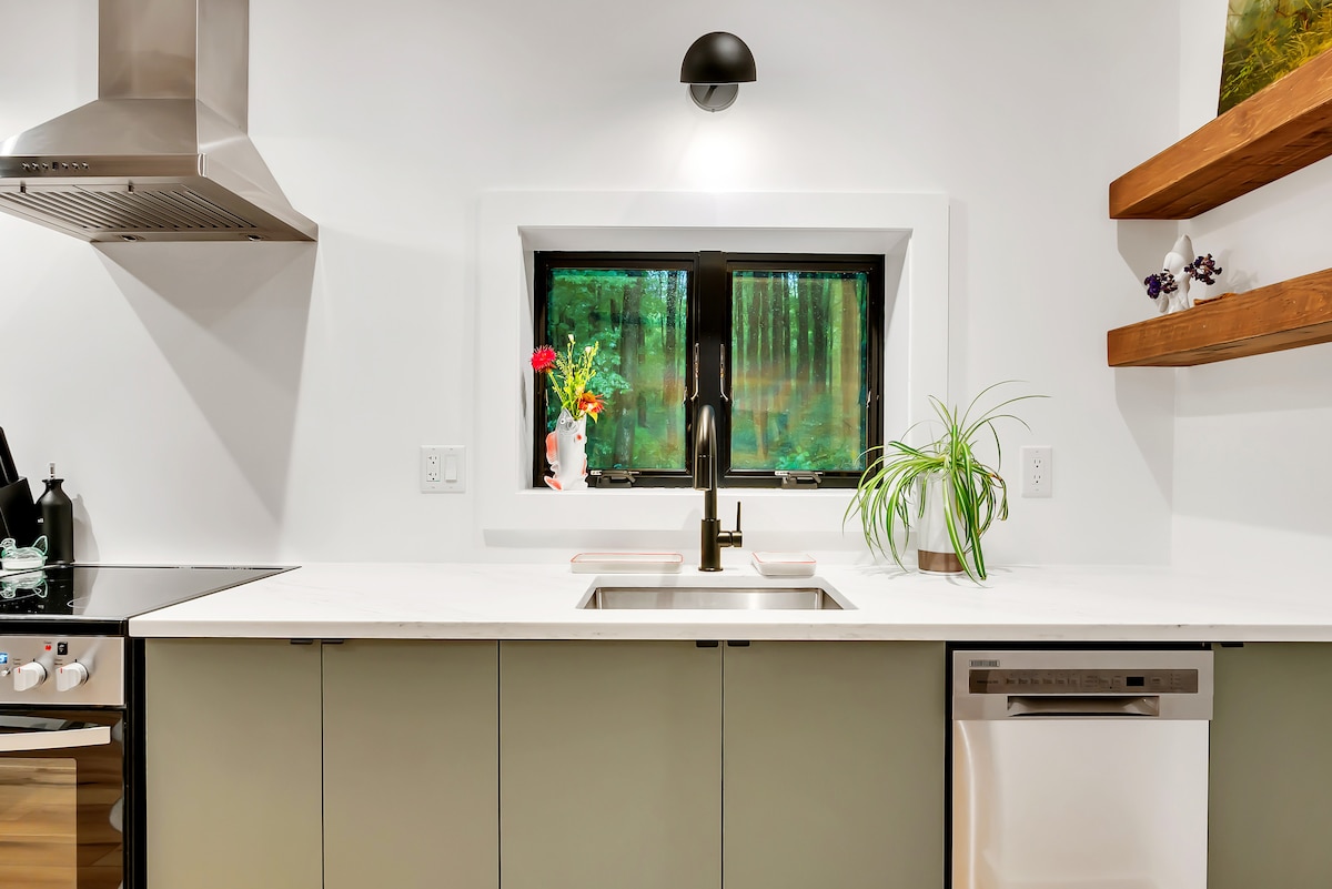 Vuelve a capturar el encanto del pasado mientras disfrutas del lujo moderno en esta casa construida originalmente en la década de 1890. La residencia cuenta con techos detallados originales, una estética de diseño de mediados de siglo, ladrillo original renovado y brillantes toques de color. Unidad entera de 900 pies cuadrados en el primer piso. Incluye 1 dormitorio(Queen), cocina privada/comedor, sala de estar y un baño. La casa adosada está restaurada con hermosos detalles vintage, pero también con todas las comodidades de la vida moderna, como wifi de alta velocidad, termostatos digitales y entrada a la casa a través de una cerradura inteligente. * Tarifa única adicional de $ 25 para configurar un colchón de aire para 2 huéspedes. Todos los huéspedes pueden utilizar todas las instalaciones de nuestra propiedad, incluido nuestro patio trasero. La propiedad está situada en el centro de la ciudad histórica de Kingston. Explora el mercado de agricultores de fin de semana a solo unos pasos del porche delantero, así como de cafés, restaurantes, museos y locales de música locales. La casa de huéspedes Bau es de fácil acceso. Está a 7 minutos a pie de la parada de autobús Kingston Trailways y a 5 minutos en coche desde la salida 19 de la I-87. El estacionamiento en nuestra calle está medido de lunes a viernes de 9:00 a. m. a 5:00 p. m. También hay estacionamiento gratuito en la calle disponible a la vuelta de la esquina.