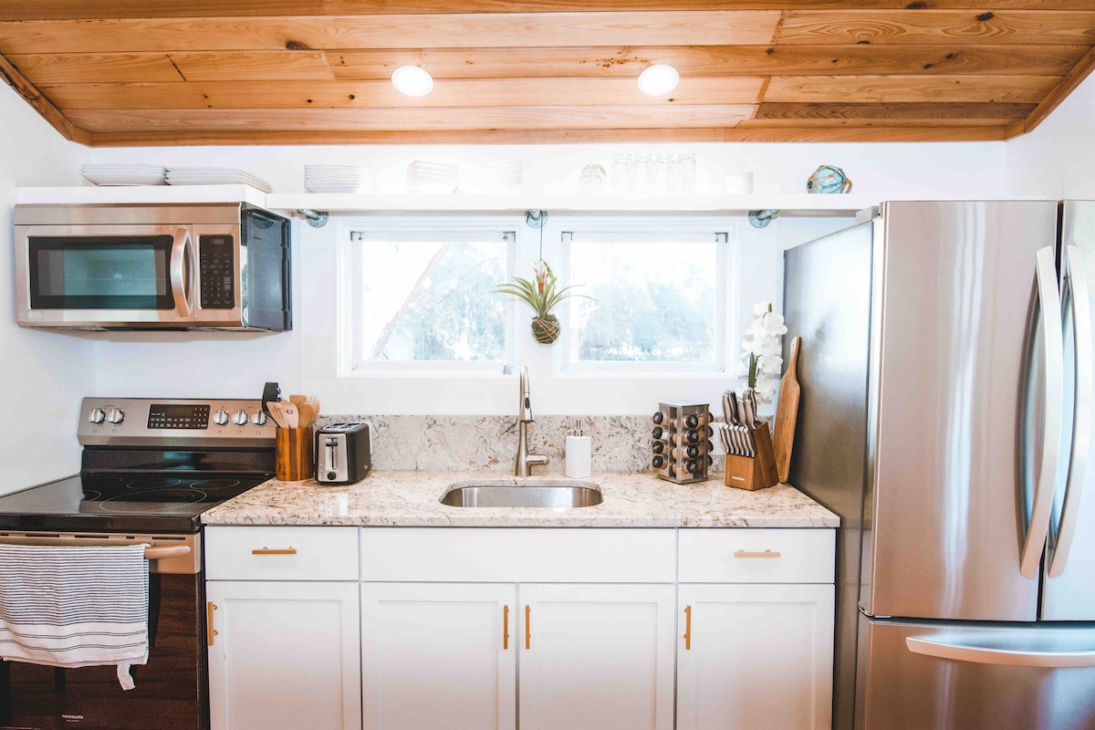 Disfruta de espectaculares amaneceres, noches iluminadas por la luna y magníficas vistas de Core Sound desde esta histórica cabaña tipo estudio recientemente renovada que en su día fue el hogar de la oficina de correos original del Atlántico. ¡Se admiten mascotas! 200' de playa privada (este es el sonido, por lo que no es una playa con olas) y acceso compartido al muelle. Cama tamaño queen cómoda. Internet de alta velocidad. TV inteligente. Parrilla de gas. ¡Maravillosamente minimalista! Trae tu barco/kayaks para aprovechar la excelente pesca y las playas de la Costa Nacional de Cape Lookout.