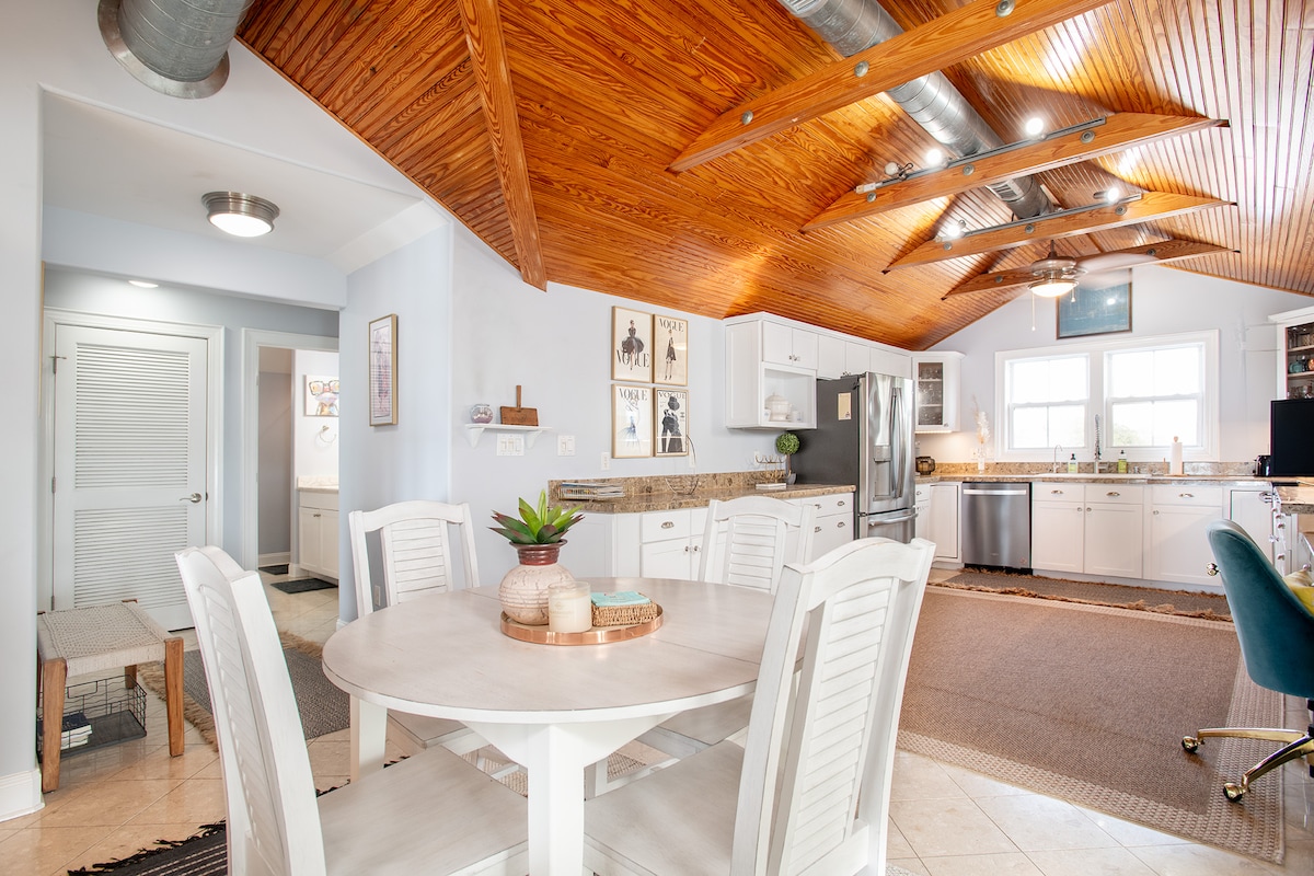 Encantadora casa de huéspedes en el histórico Beaufort. ¡A dos manzanas de Front St con las tiendas, restaurantes, hermosos barcos y el paseo marítimo! Aparcamiento privado y acceso a lo largo de un camino de ladrillo, rodeado de un jardín inglés. En el interior encontrarás una espaciosa sala de estar con TV de 50 pulgadas, cocina completa, baño completo con ducha de vidrio con azulejos y un dormitorio espacioso con litera incorporada. Hay un patio privado con asientos, un pozo de fuego y un muelle público a 3 casas de distancia para pescar, pescar cangrejos, hacer kayak y nadar.