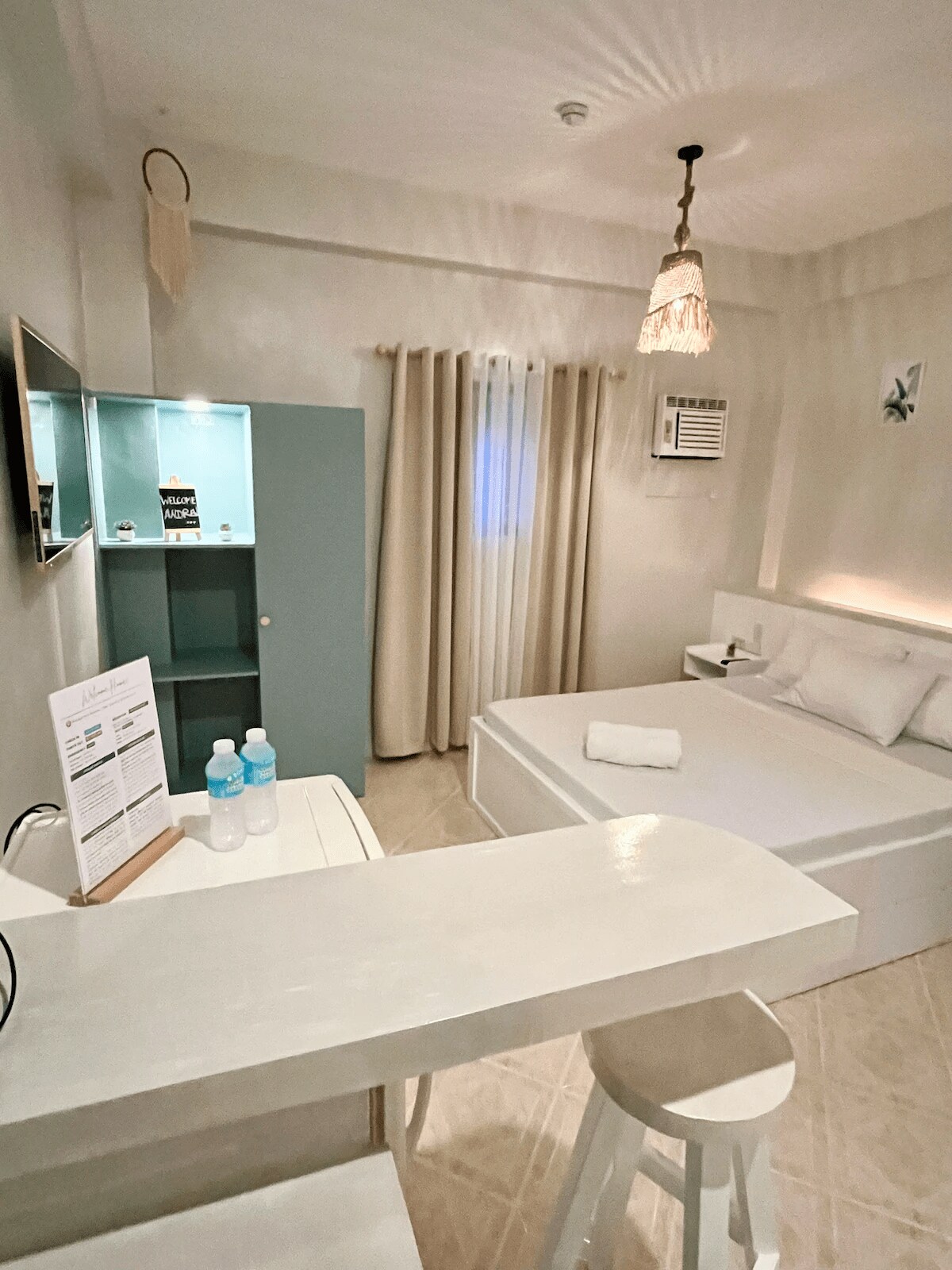 Handum Hillside Apartments es un edificio ecológico con ventilación cruzada de 360 grados en todos los apartamentos. NOTA: NO se permite fumar en ningún lugar de nuestra propiedad ni en ningún lugar público de la isla de Borácay. Estamos a solo 5 minutos de la playa delantera en Willys Rock Station 1 y a 15 minutos de los grandes supermercados. La estación 1 tiene la arena más fina y la playa más amplia. Está menos concurrida y es donde se encuentran los establecimientos de gama alta.