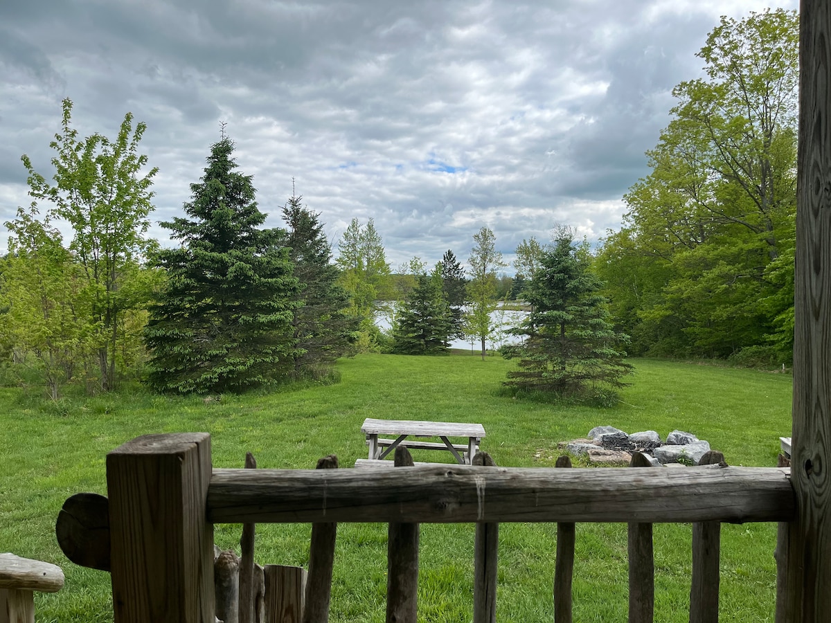 Cabaña primitiva en la cima de una colina frente al mar a más de 1000 pies de la carretera de tierra con litera y loft para dormir. Capacidad para 4 personas, pero hay mucho espacio en el porche y mucho espacio para montar una tienda de campaña si se desea una zona de dormitorio adicional. Hay un baño exterior cerca de la cabaña. Gran hoguera de roca, parrilla estilo parque y mesa de picnic para tu disfrute. Manzanos silvestres, arándanos y vida silvestre por todas partes. Lago de 50 acres para pescar o remar y senderos para caminar.