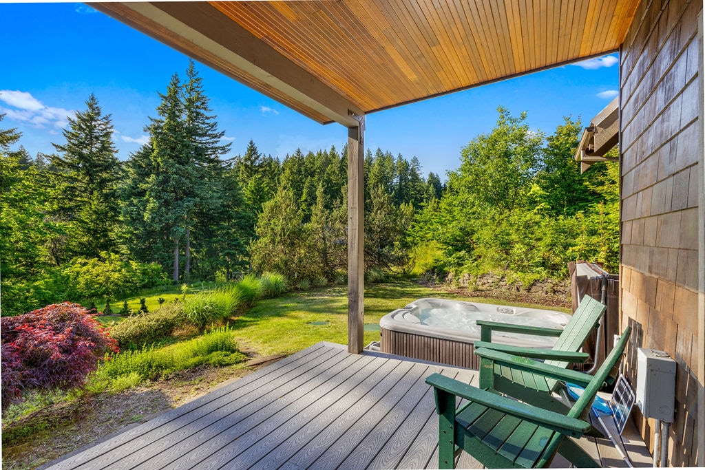 ¡Impresionante cabaña moderna en 16 acres boscosos! ¡Tu propio mundo privado, pero a 15 minutos de Stevenson y a 45 minutos de Portland! ¡Vida abierta, comedor, cocina con control deslizante a la terraza y dos pisos de vidrio con vistas a magníficos árboles de cedro y arroyo de temporada! Disfruta de la gran bañera con vistas después de una larga caminata. ¡Dos habitaciones con literas y baño completo a la luz del día en el nivel inferior conducen a la terraza y a la ducha exterior! Disfruta de la cena en el porche o junto a la fogata. ** Jacuzzi de leña disponible por un cargo adicional **
