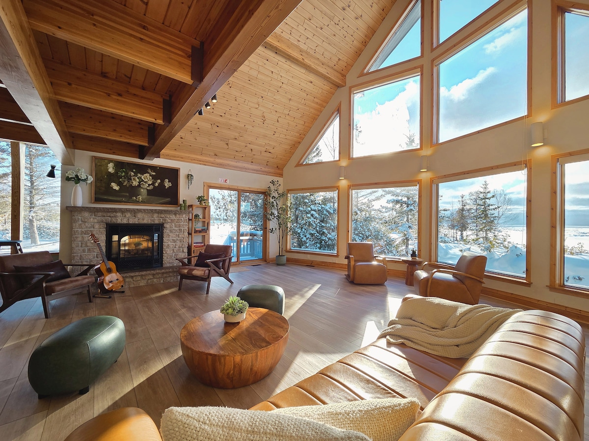 Esta casa de playa fue diseñada pensando en la relajación y el disfrute de la unión. Deja que tus preocupaciones se desvanezcan mientras te deslizas en la calidez de este jacuzzi junto al agua con impresionantes vistas a la bahía Georgiana y a la ladera de la montaña, mientras la nieve fresca cae a tu alrededor. El diseño de concepto abierto hace que este sea el lugar perfecto para reunirse con familiares y amigos con patio frente al mar y acceso al muelle para nadar. A 2 minutos del centro de Meaford, a 20 minutos de Blue Mtn, a 1,5 horas de Tobermory. Rutas de senderismo.