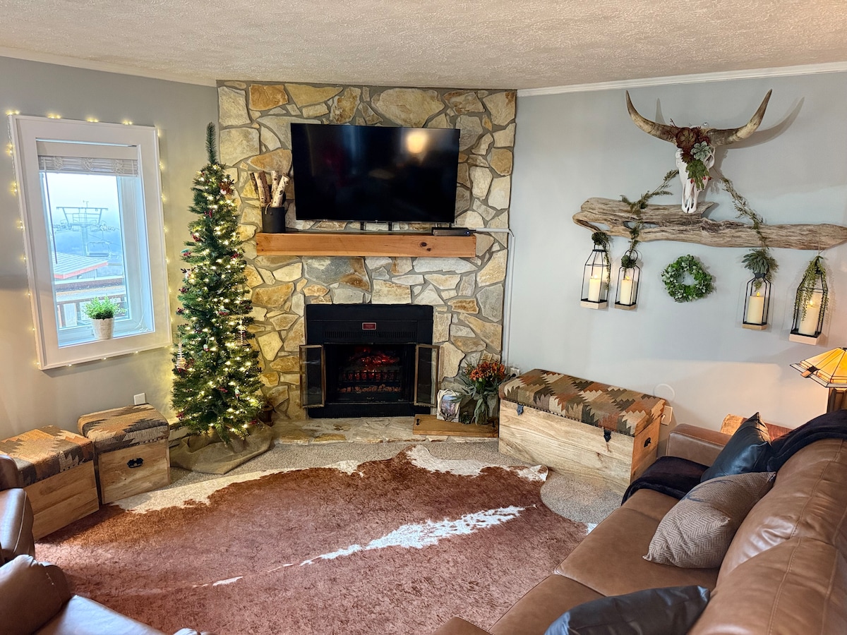Mira cómo se desbordan los estacionamientos de la estación de esquí a través de las ventanas de tu sala de estar mientras te sientas a poca distancia a pie de las pistas. Esta es la única casa en Beech Mountain que está en la misma calle que el propio centro vacacional. Esta es la ubicación de ensueño para el ávido esquiador y ciclista de montaña. Esta casa de diseño moderno cuenta con muebles, camas y ropa de cama nuevos. Está completamente equipada con todo lo que puedas necesitar, ¡incluida una barra de café personalizada! Este es el lugar perfecto para sentirte como en casa mientras estás fuera.