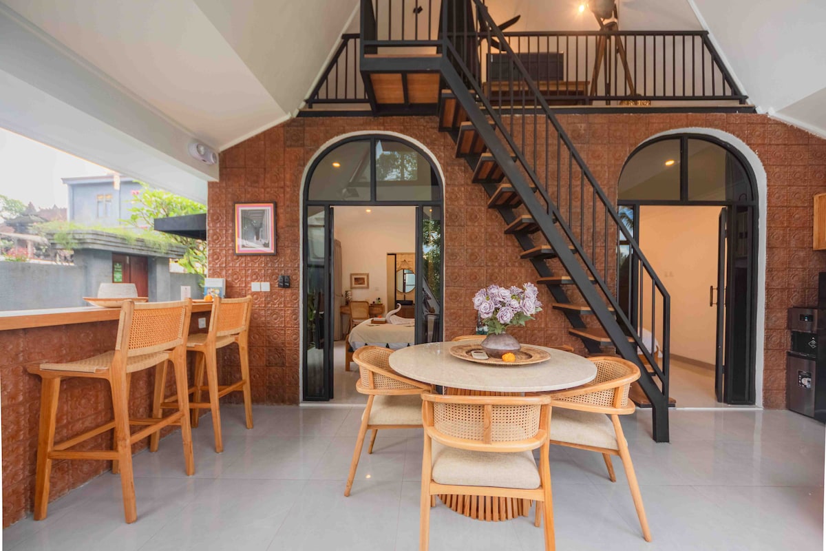 Una villa de 1 dormitorio muy bien diseñada con piscina privada a pocos minutos del centro de Ubud. Inspirada en la abundancia de materiales de reciclaje, esta villa es una casa de madera bellamente restaurada totalmente equipada con instalaciones para que tu estancia sea más cómoda. Cama tamaño king súper cómoda, decoración elegante, piscina privada, bañera y exuberante jardín tropical. Este es el lugar perfecto para unas vacaciones extraordinarias en Ubud.