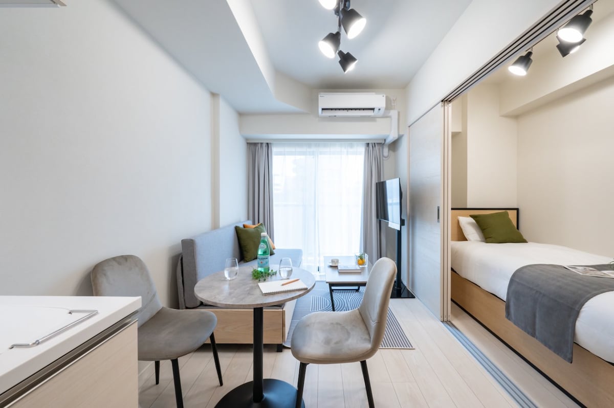 Sumida-ku, Tokio | Elegante casa en el cuarto piso en la tranquila esquina de la calle | Estilo occidental/cuerpo combinado de tatami japonés | Cerca del templo Asakusa y Skytree Una tranquila casa rural se esconde en un rincón de una ciudad bulliciosa. Entra en este apartamento de estilo japonés y occidental en el cuarto piso, como si estuvieras de vuelta en tu propio pequeño mundo. Distribución de la habitación En esta elegante habitación 401, el dormitorio es único y satisface las diversas necesidades de la vida. Equipado con dos camas dobles de 1,4 m de ancho y 2,0 m, suaves y cómodas, la disposición fresca y moderna hace que sea fácil entrar por la puerta. · Espacio luminoso y cómodo con sofá cama plegable abatible de 1,4 m de largo y 2 m. La disposición del sofá cama se ajustará en función del número de huéspedes: si sois más personas, prepararemos el número correspondiente de futones con antelación; si el número de personas es pequeño, se utilizará como espacio de descanso.Para prepararnos mejor, indícanos con antelación cuántos huéspedes se alojarán.Gracias por tu colaboración y comprensión. Cuando regreses por un día, acuéstate en la cama o en el sofá, disfruta de la vista nocturna del Skytree mientras disfrutas de la vista nocturna del cielo, es una gran relajación de tu cuerpo y mente. Cocina de planta abierta, equipada con utensilios de cocina básicos, adecuada para cocinar una comida casera sencilla de vez en cuando Para evitar alergias u olores, no hay condimentos en la habitación, prepárelos usted mismo Baño Baño seco y separado, mantenerlo limpio y limpio Artículos de aseo básicos, como cepillos de dientes desechables, secadores de pelo, etc. Lavadora con función de secadora, sin necesidad de preocuparse por la ropa para secar para negocios o estancias largas. Comodidad suave, superalimentos a poca distancia
