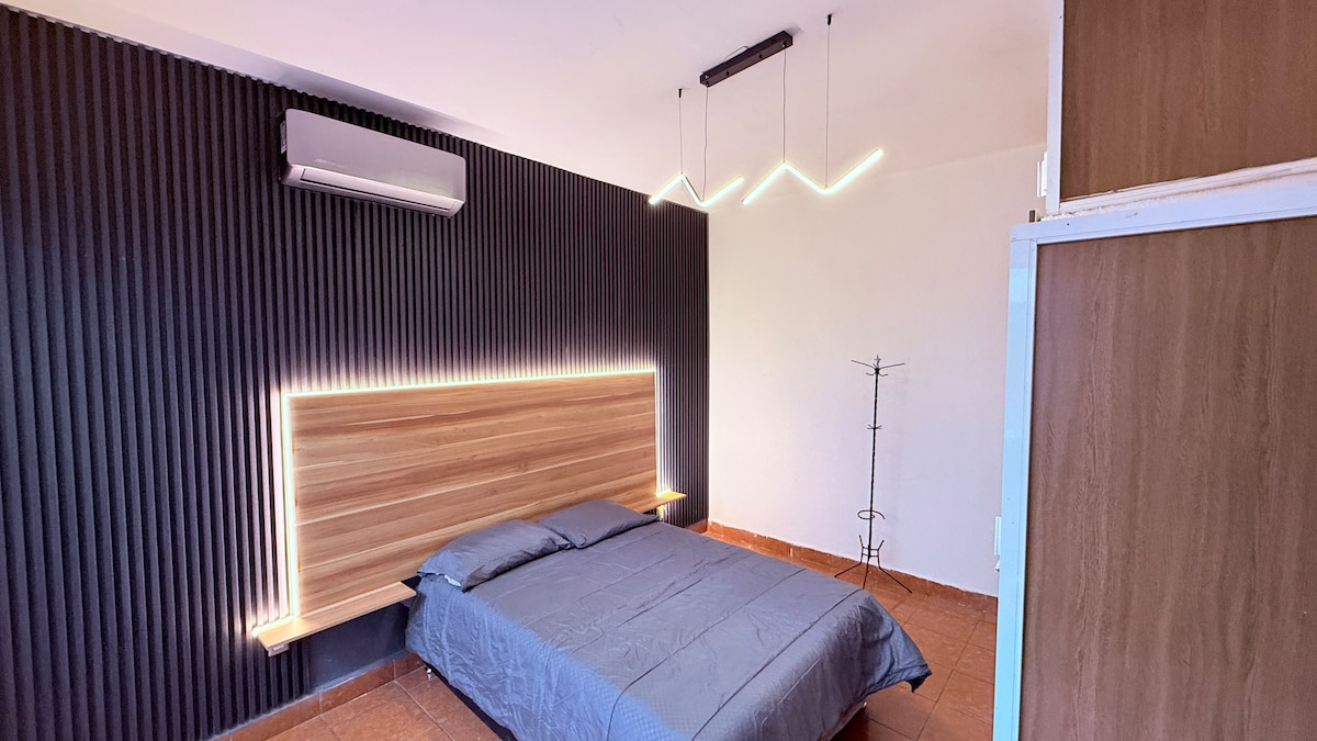 Departamento climatizado en el centro de la ciudad de Tuxtla Gutiérrez, te aseguro que pasarás una estancia tan cómoda que te sentirás como en casa; ideal para 2 personas. Una habitación con dos camas individuales, area de televisión , cocineta con instrumentos básicos para cocinar durante tu estancia. Este alojamiento no cuenta con ventanas si prefieres la privacidad es ideal.