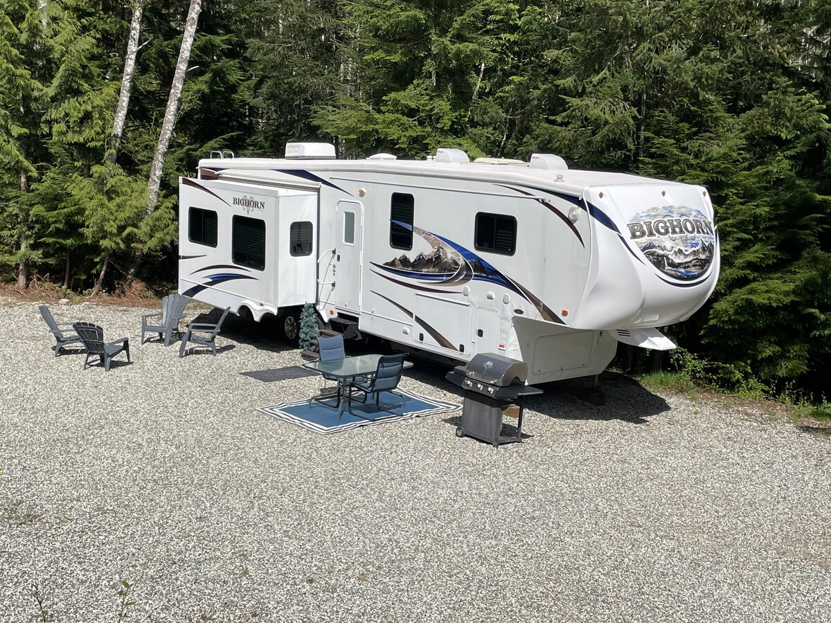 Este es un remolque de viaje de modelo más nuevo que está totalmente equipado con baño completo y ducha, cocina completa y microondas. La autocaravana está estacionada en nuestra propiedad con conexiones completas a electricidad y agua. El dormitorio tiene una cama tamaño queen y el comedor pequeño se puede plegar para acomodar a otros 2 adultos. Nota para los viajeros: para aquellos que viajan los fines de semana y los días festivos, se recomienda reservar el ferry.