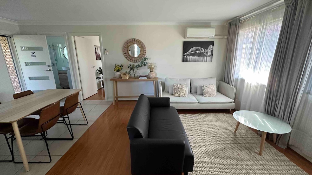 Pasa la noche en un lujoso apartamento privado adecuado tanto para estancias cortas como largas. Ubicado en un barrio tranquilo, este apartamento está convenientemente situado junto a una parada de autobús o a 800 metros a pie de la estación. A 12 minutos en coche del Parque Olímpico de Sídney, Westfield Burwood o Parramatta. - Cama tamaño queen, baño privado y lavadora. - Cocina totalmente equipada y elegante con encimeras de piedra y utensilios de cocina. - Entrada privada y estacionamiento gratuito ilimitado. - No se permiten fiestas en casa. - No se admiten mascotas.