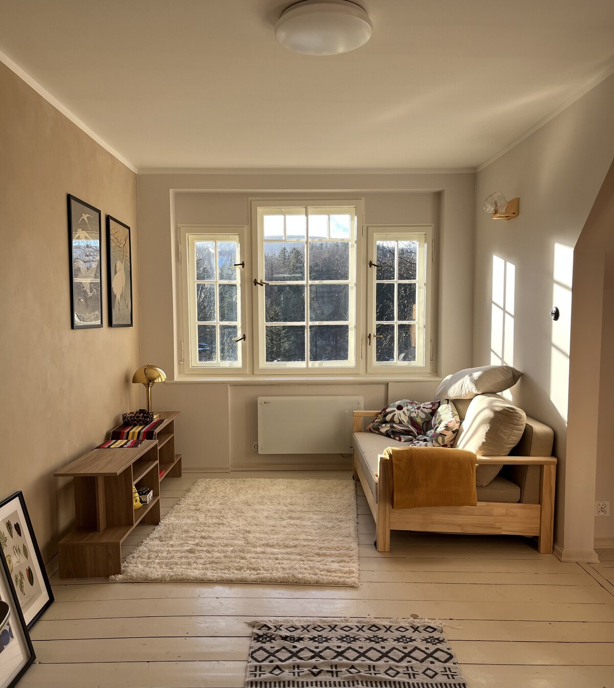 Skog es un apartamento moderno diseñado en un estilo escandinavo minimalista, utilizando principalmente materiales naturales en el interior. Tiene unos 70 m2 e incluye 2 dormitorios separados. Uno está en el ático con techo más bajo. El apartamento cuenta con una amplia terraza. Está situada en el barrio con algunas otras casas construidas en estilo similar a poca distancia del centro. La cascada de Mumlava está a solo 10 minutos a pie por el bosque. El edificio 007 (gimnasio y centro de squash) se está renovando desde el 07/2025 hasta el 03/2026.