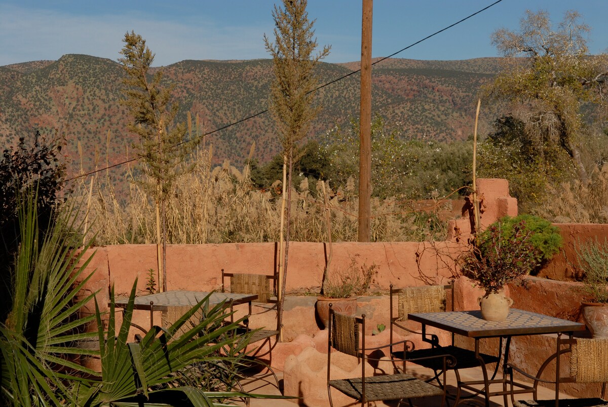 El hotel se encuentra dentro de la antigua Kasbah con sus antiguas casas hechas de tierra y jardines cerca del río. Es una parte muy tranquila del pueblo. Desde nuestras diferentes terrazas puedes disfrutar de la hermosa vista. Nuestro restaurante ofrece deliciosas comidas marroquíes preparadas con productos locales y orgánicos. La habitación tiene una hermosa vista sobre los jardines y las montañas. Dispone un baño privado con una ducha caliente, televisión, aire acondicionado y wifi gratis.