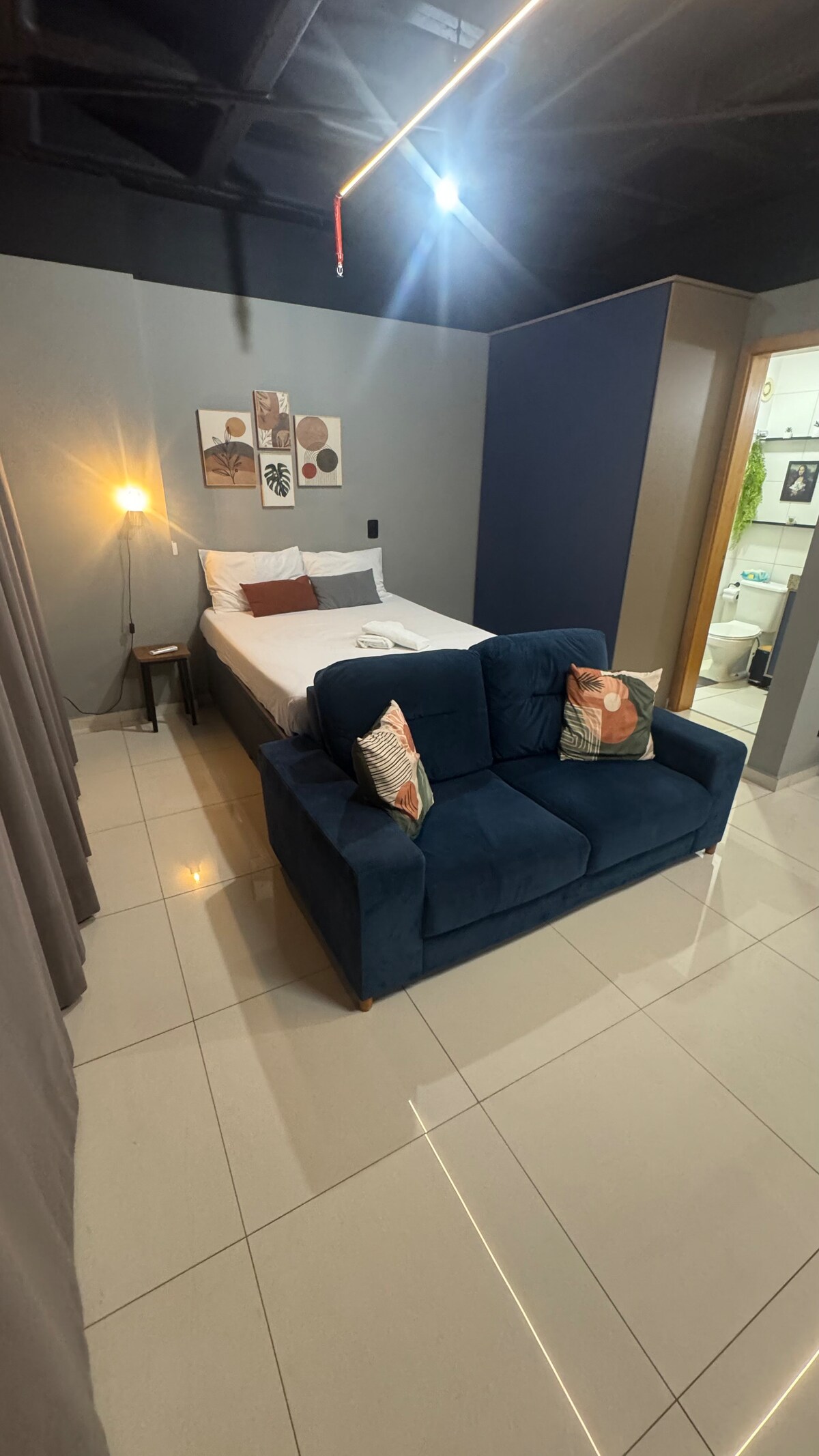 Loft extremadamente cómodo y acogedor reformado y preparado exclusivamente pensando en el alojamiento de los huéspedes que vienen a la ciudad por trabajo o por placer. Tiene una cama muy cómoda, un televisor inteligente que permite ver tus arroyos y una cocina compacta, pero bien equipada para ayudarte en tus comidas rápidas. El apartamento está ubicado dentro del complejo DF Century Plaza, con un centro comercial con varias opciones culinarias, como Coco Bambu y Outback.