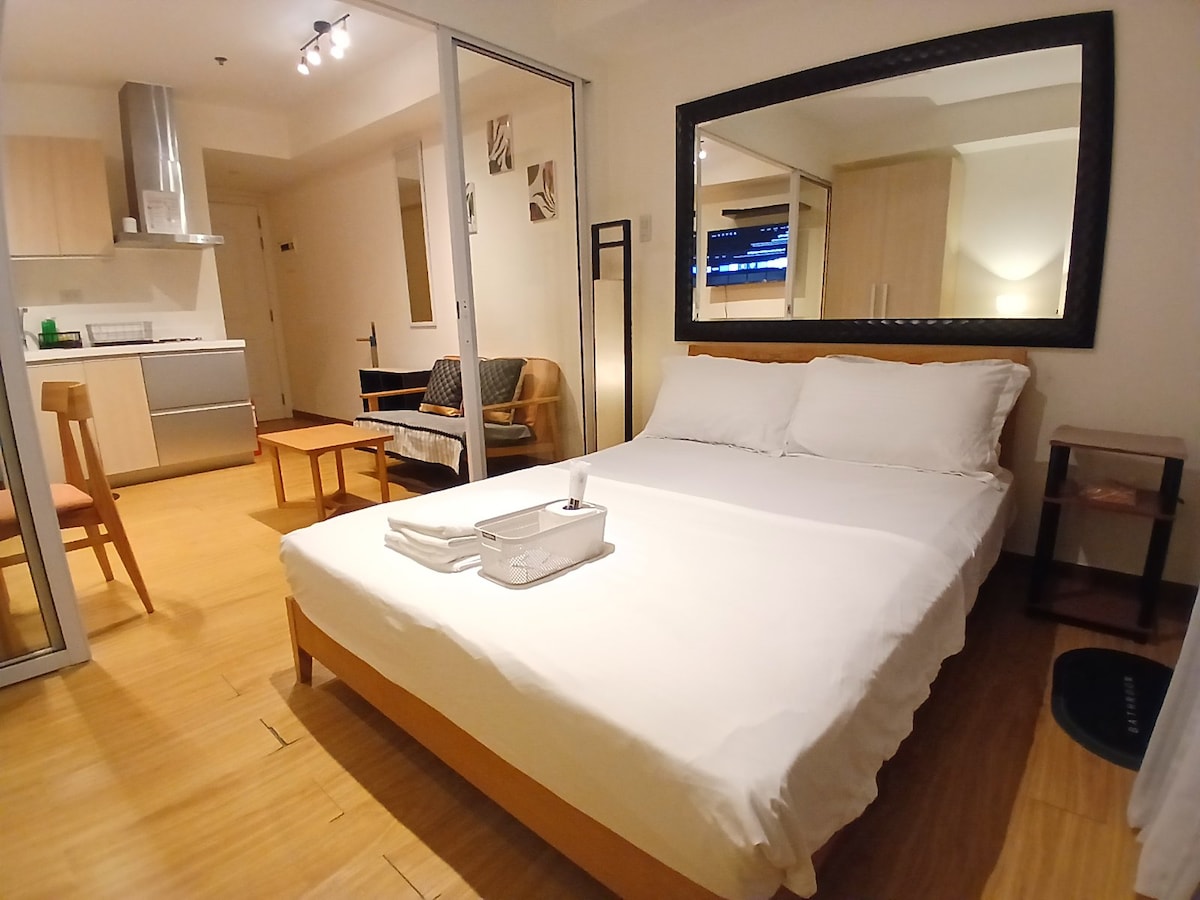 La ubicación está a poca distancia a pie de SM Bicutan y a solo 15 minutos de NAIA 1, 2 y 3. La tarifa es buena para 2 pero se permite una persona adicional hasta 2 personas. Un lugar minimalista con un toque de naturaleza. Un alojamiento estupendo que ofrece todo lo necesario para una estancia corta. Duerme como si estuvieras en casa. Nuestro objetivo es que tengas un ambiente hogareño. Disfruta de tu estancia con tus seres queridos aquí. Te ofrecemos una habitación elegante y cómoda, utensilios de cocina, wifi y televisión inteligente para tu entretenimiento.