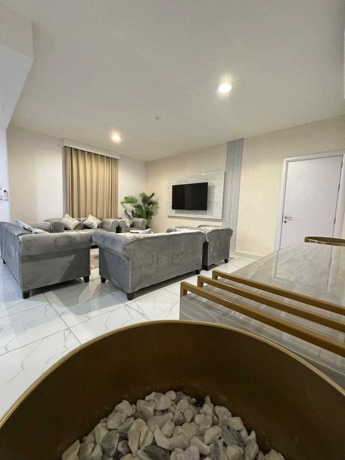 هذا المسكن الأنيق والمثالي للرحلات العائلية يتميز بتصميمه العصري ومساحاته الواسعة، حيث يضم غرفة ماستر فاخرة، وغرفة أخرى بسريرين، بالإضافة إلى صالة رحبة توفر أجواء مريحة للاسترخاء. كما يحتوي على دورتين مياه، وقسم مخصص للغسيل، إلى جانب مطبخ مجهز يلبي جميع الاحتياجات. يتمتع المكان بإضاءة هادئة تعزز الراحة، وديكورات حديثة تضفي لمسة من الأناقة والفخامة. ويزيد من جاذبيته فناء خلفي جميل، مثالي للاستمتاع بالهواء الطلق وقضاء لحظات هادئة في أجواء مريحة وجذابة.