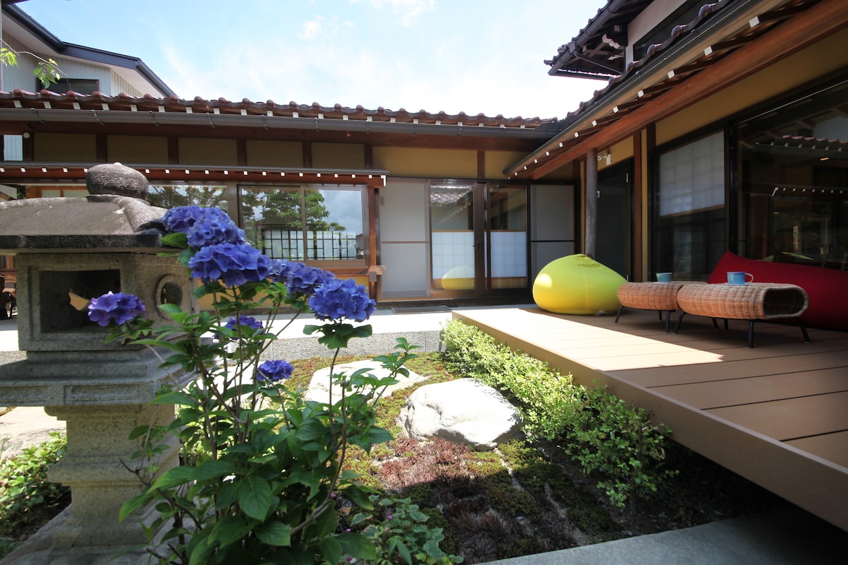 Es una casa japonesa reformada de una casa antigua de 40 años. Se encuentra a unos 5 minutos a pie de la salida oeste de la estación de Takayama, en una zona residencial tranquila, y tiene un estilo imponente de una casa tradicional japonesa vista desde la entrada principal. El interior, renovado y convertido en un estilo moderno japonés, incorpora abundantes muebles de estilo tradicional de Hida. Además, podrá disfrutar de un baño al aire libre y de un baño en un estanque con vistas al hermoso jardín. Por favor, relájese lentamente en el tranquilo interior.