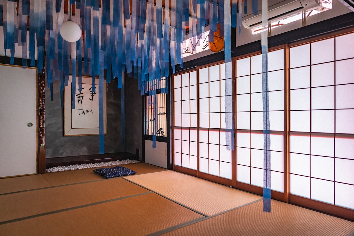 Hanatsu significa «dejar ir». Diseñamos este lugar para que puedas relajarte y dejarte llevar en el ajetreo de los viajes a través del ideal de «shibui» (sobrio y sencillo). Aquí estamos orgullosos de ofrecer la sensación de Japón en una cómoda casa privada; la belleza del tatami, paredes de tierra, puertas correderas, azulejos y washi (papel japonés). El ferry del puerto de Uno está a 3 minutos en tren (14 en bicicleta eléctrica), por lo que servimos como una puerta de entrada ideal a las islas del Mar Interior, incluidas, por supuesto, Naoshima, Teshima e Inujima.