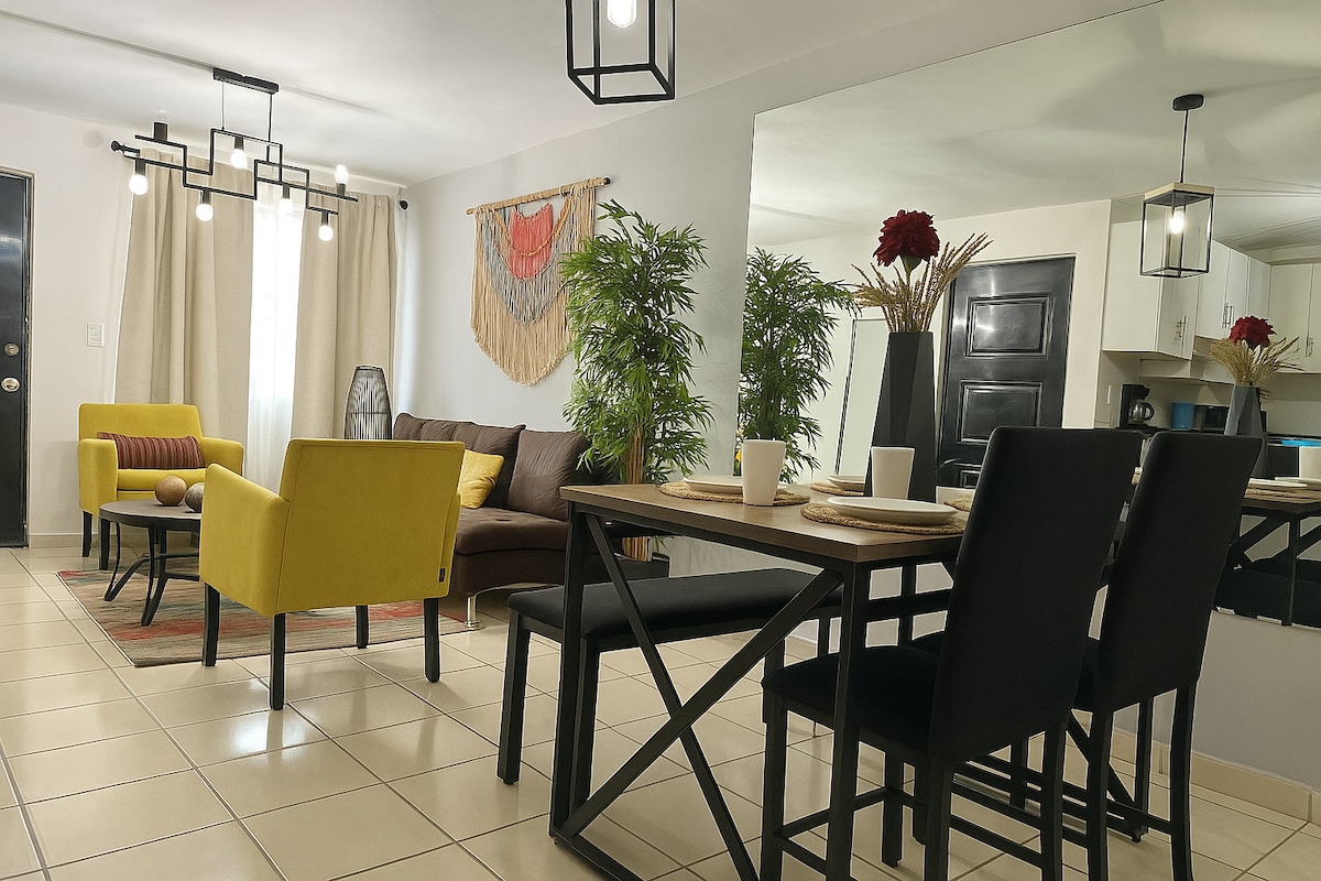 ➡ CASA SULTAN Disfruta de la comodidad de un apartamento contemporáneo recién construido con televisión de 85”. Guarda tu coche seguro en nuestra cochera privada y techada (por favor pregunta por disponibilidad). Cuenta con un área de comedor y capacidad para hasta 5 personas, dispone de una cama king size y un sofá cama doble para tu comodidad. Además, tendrás a tu disposición una lavandería con lavadora y secadora.