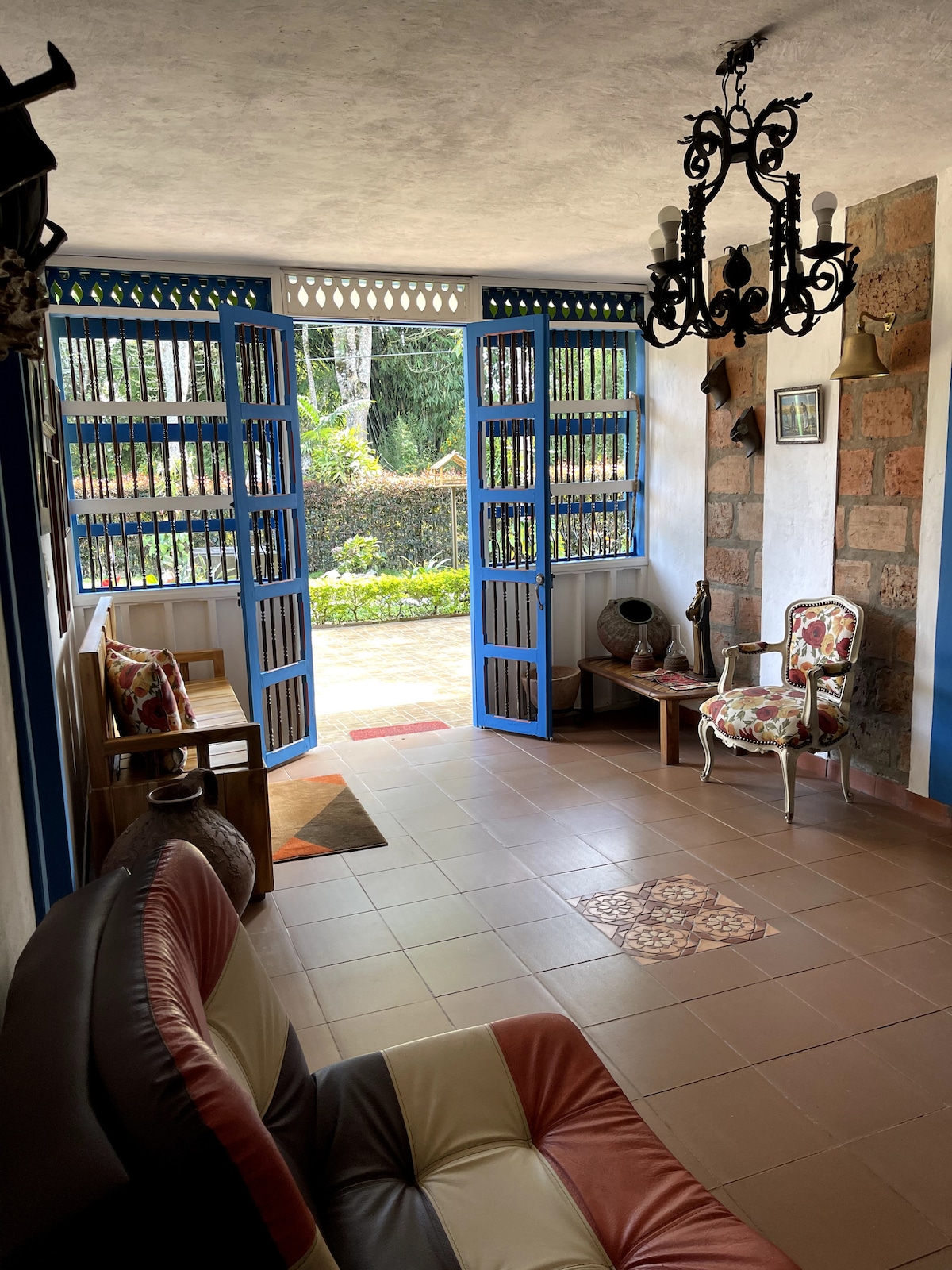Casa campestre entera. La estadia es en una casa, dentro de la propiedad donde tambien vive la anfitriona Patricia, quien puede darle consejos sobre las experiencias en Jardin. Hermoso y tranquilo lugar. Ideal para relajarse, para pasear, para entrar en contacto con la naturaleza, para avistamiento de aves. La propiedad cuenta con rios, arroyos, bosques, cultivos, guaduales. A diez minutos en auto del centro del pueblo de Jardin, 30-40 minutos de agradable caminata. Pocas casas alrededor.