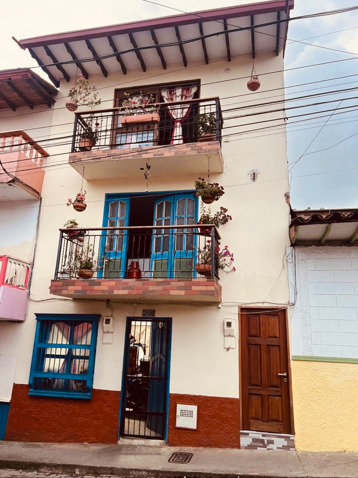 Casa dúplex de estilo republicano, habitaciones amplias, cada una con ventanal grande a la calle, con muy buena iluminación y ambiente fresco, con agradable vista a las montañas, ubicada en un sector residencial a 4 cuadras del parque principal. Cerca a museos, iglesias, supermercados, bancos, a todo el comercio y a los sitios turísticos del municipio.