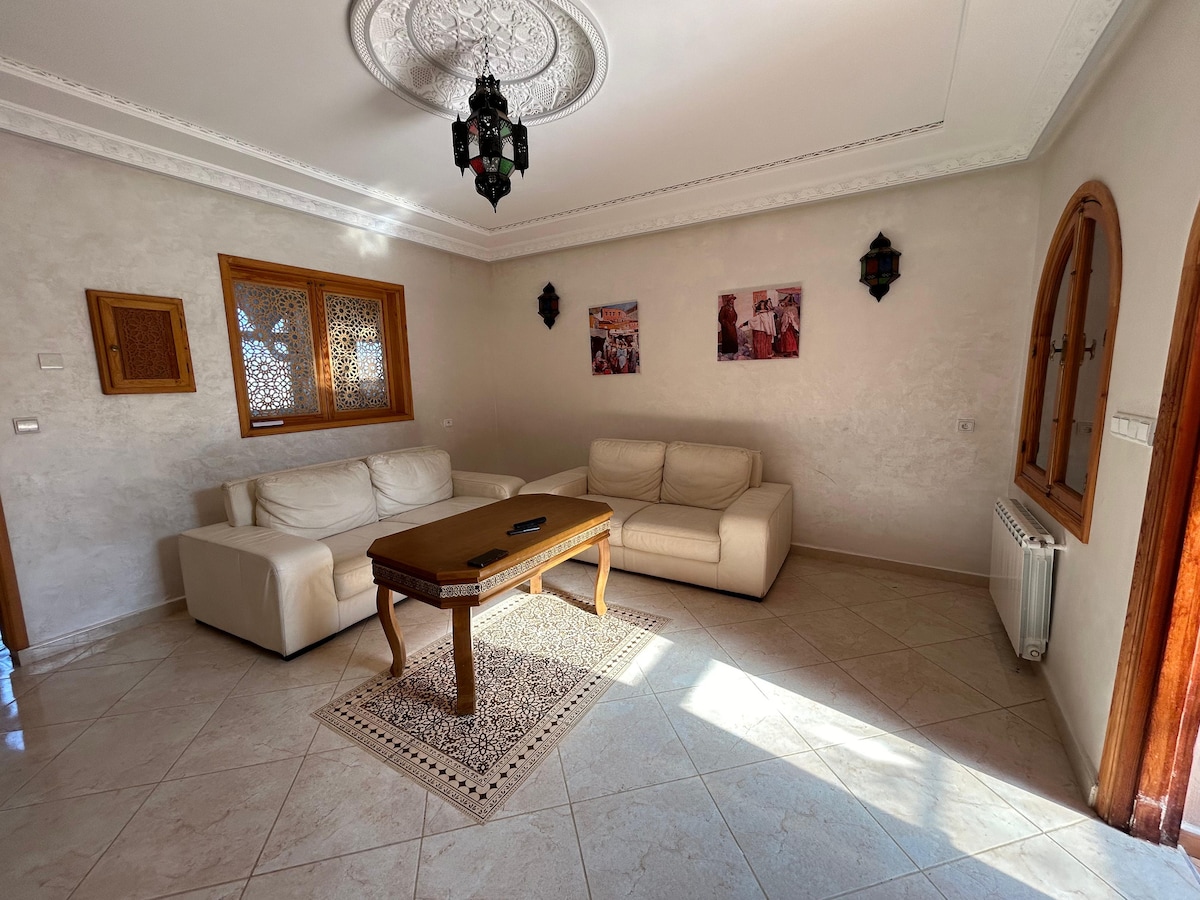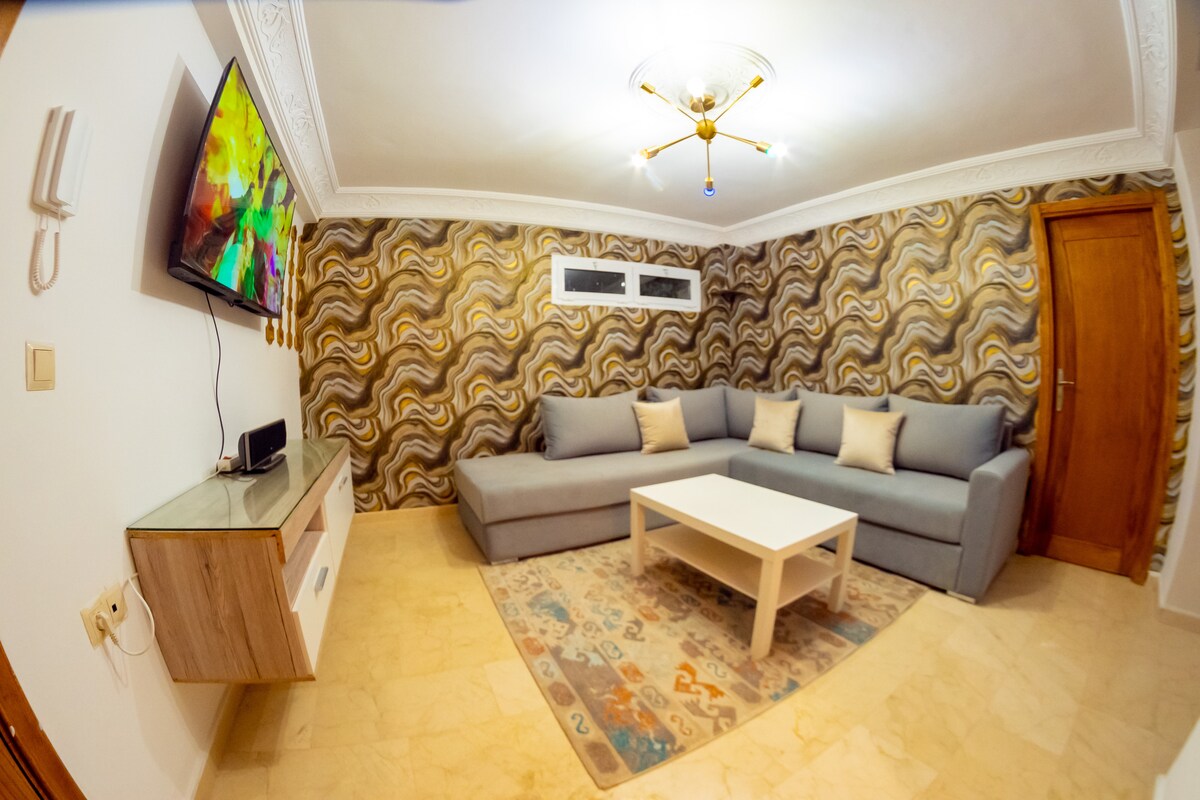 Logement élégant , central , neuf , bien équipé et sécurisé , calme. Tou est nouveau! Avec un parking gratuit sur place. L'appartement Fatima , propose 3 chambres au 2ème étage situé à Aida village Avenue Moulay Rachid, Tanger . Avec un salon , une television écran plat , une cuisine équipèe , 2 salle de bain. Le logement se situe au plein milieu de Tanger, entre centre-ville, plages sur la mer méditerranée, Grottes d’hercule sur l’océan atlantique, plage Achakkar .etc 10-15 min en voiture