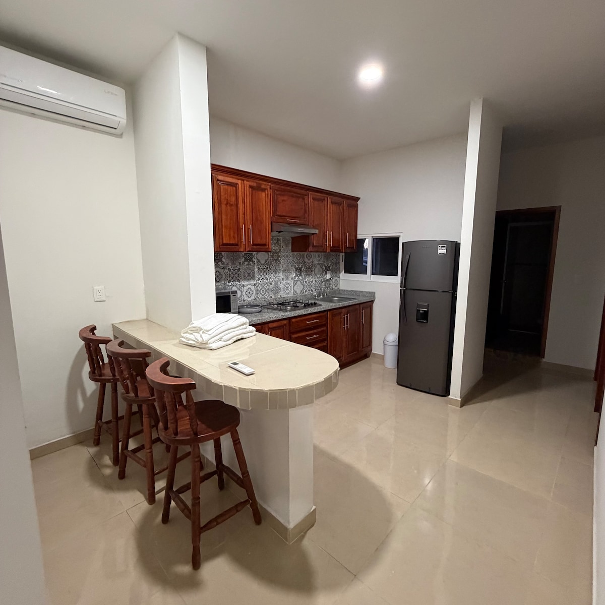 Bienvenidos a nuestro exclusivo departamento, ideal para 7 huéspedes. Con cuatro habitaciones y cinco camas, ofrece espacio y privacidad. Dispone de tres baños completos para mayor comodidad. El uso del porche electrónico está sujeto a disponibilidad, perfecto para relajarse al aire libre. Este departamento está en el segundo piso de nuestra propiedad. Diseñado para brindar una experiencia inolvidable, combina lujo, comodidad y funcionalidad en cada rincón.
