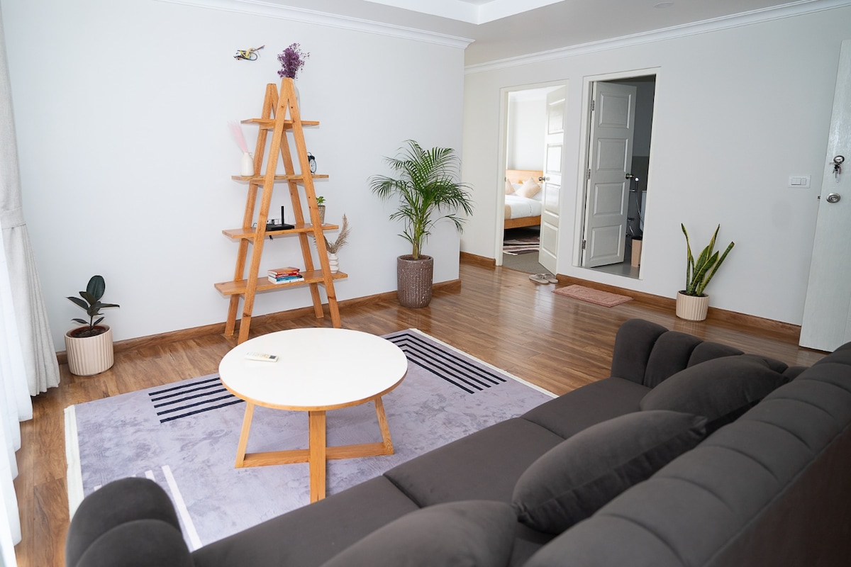 Saalu's modern APT consists of high ceiling where the sunlight hits and brightens up the entire apartment. Enjoy your time in our spacious apt which consists of 1BHK with one extra BOX room, fully equipped kitchen, outdoor furniture and a private rooftop all to yourself. With our luxurious interior and ultimate privacy on top floor, you will feel like it's your private home!