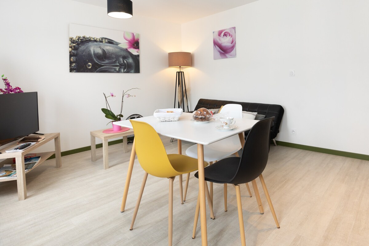 Apartamento de 60 m2 en una zona tranquila cerca de los santuarios y de todos los servicios, 1.ª planta con 2 dormitorios que tienen una cama de 2 plazas con colchón cómodo, sala de estar con un sofá cama de láminas muy cómodo, televisión, mesa para 6 personas, mesa de centro, una cocina con todos los utensilios (cubiertos , cacerolas) un microondas, un frigorífico-congelador, cafetera, hervidor , tostadora. WIFI gratis Aparcamiento gratuito cerca del alojamiento. Idealmente bien situado. Serán bienvenidos.