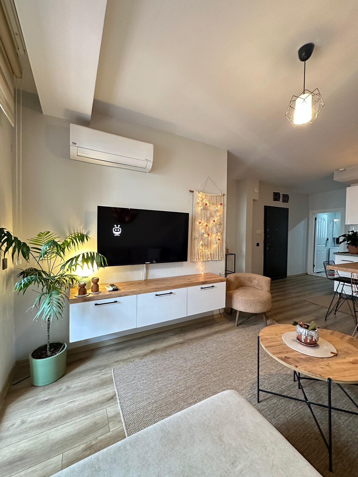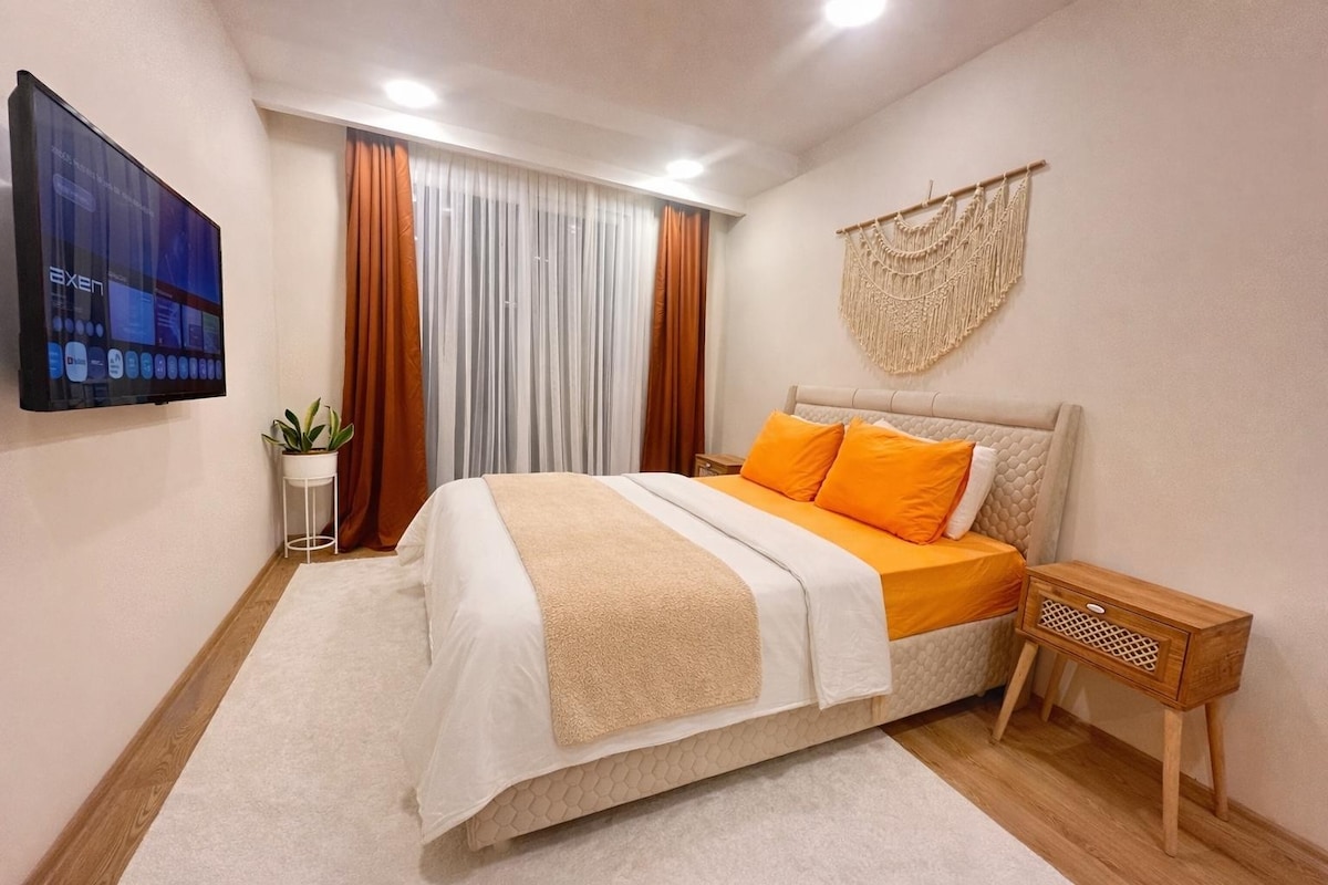 Disfruta de una estancia sencilla y acogedora en este lugar céntrico y tranquilo. Edificio nuevo con estacionamiento gratuito, cómodo gas natural y aire acondicionado. Tenemos una plaza de aparcamiento para 7 coches en la entrada del edificio, si no puedes encontrar una plaza de aparcamiento en caso de llegar tarde, no es un problema, cuando giras a la izquierda después de pasar el edificio, hay áreas donde puedes aparcar tu coche, puedes ver fácilmente juegos de superligi y películas y series tardías en nuestra televisión.