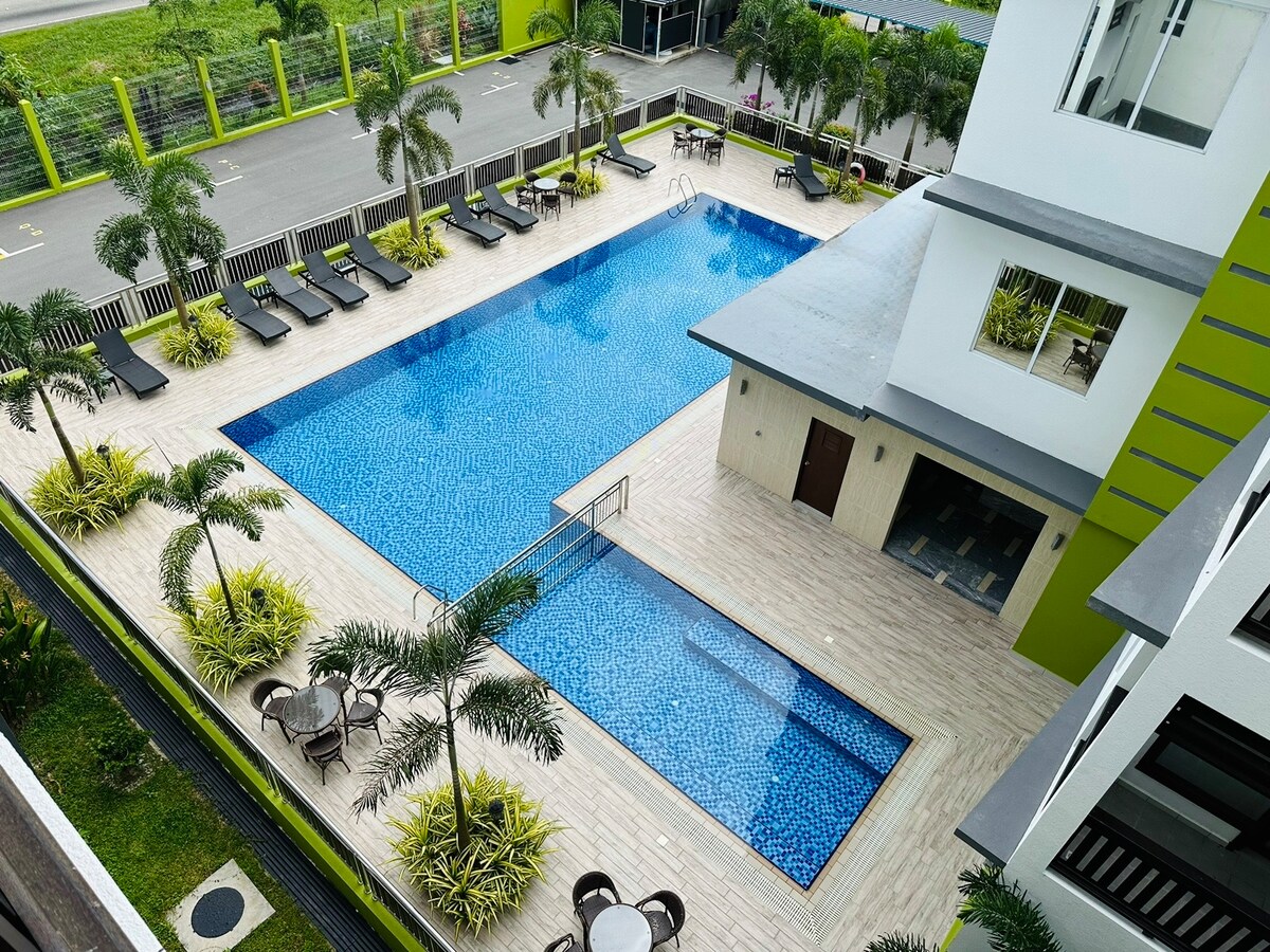 Trae a toda la familia a este gran lugar con mucho espacio para divertirse. Bunut Centre Staycation (unidad ámbar): • Bungalow espacioso, tranquilo y cómodo de 2 dormitorios adosado. • Adecuado para una familia numerosa o un grupo de amigos. • Caja fuerte para niños y ancianos. • WIFI rápido de 53 Mbps, aparcamiento gratuito y otros que aparecen en la lista. • Ubicado cerca de la carretera principal.