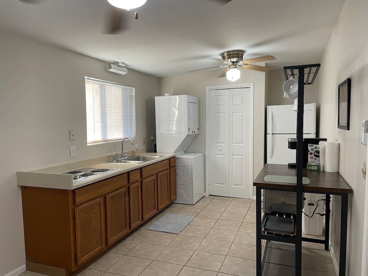 Sencillo en esta tranquila casa de huéspedes en el centro de Tempe. Disfruta de un 10 % de descuento en estancias de una semana o más y de un 20 % en estancias de más de 28 días. Está a poca distancia de las tiendas y restaurantes de Mill Avenue y de ASU. Estaciona fuera de la calle y accede a través de tu propia entrada. La cocina tiene una placa de inducción de dos fuegos y un horno de convección con microondas si quieres comer en casa. También hay un patio privado con parrilla de gas disponible para que lo uses. Hay un lavavajillas y lavadora secadora para todas las comodidades de casa.