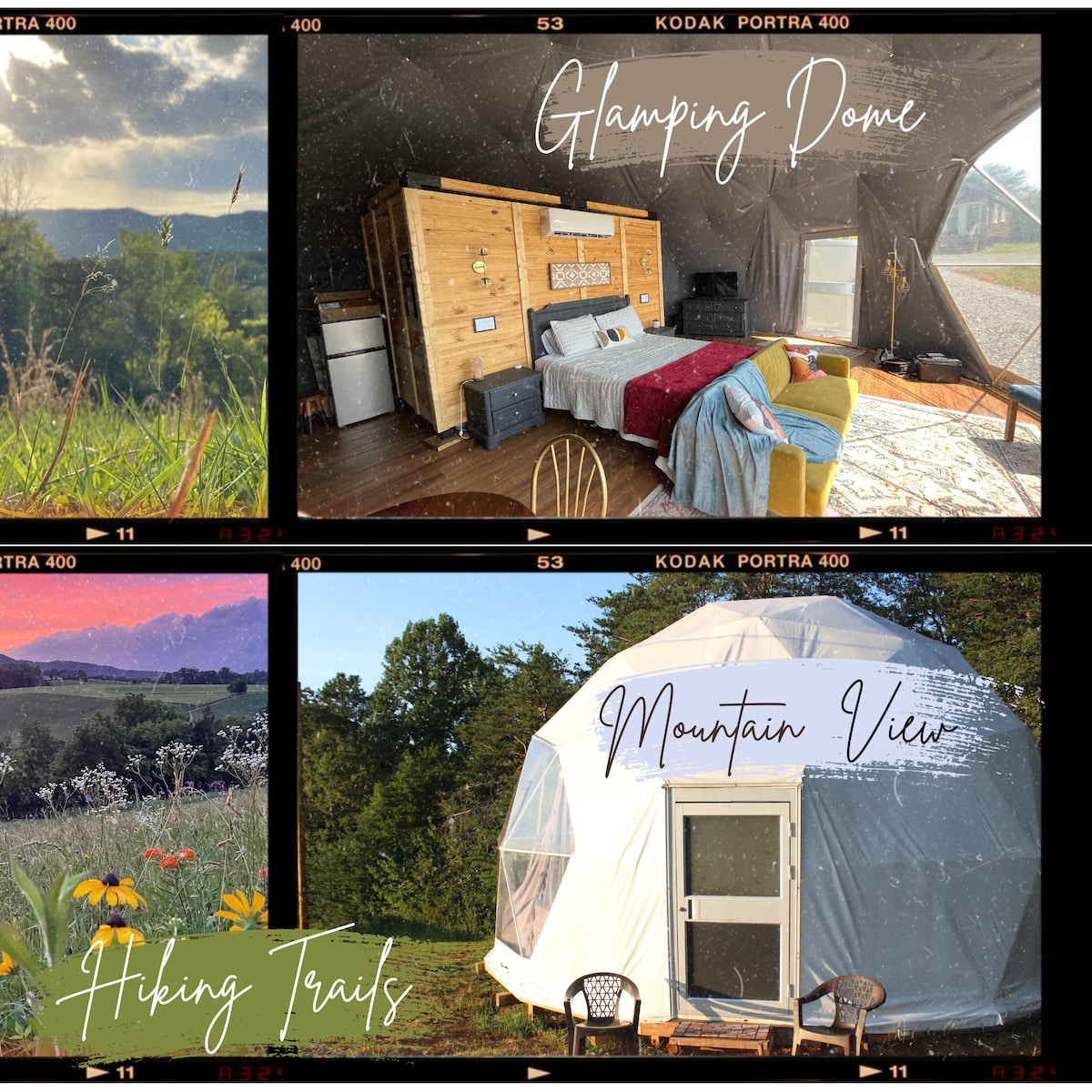 Desconéctate y vuelve a conectar con la naturaleza. El Domo está ubicado en la cima de la colina de nuestra granja. ¡Magníficas vistas a la montaña, paz y animales para visitar! Esto es CAMPING, elevado con comodidades. Ofrecemos la cúpula climatizada, una cómoda cama (trae tus sábanas), plancha y suministros básicos. Trae: ropa de cama tamaño queen, agua potable, nevera portátil y leña. Ducha al aire libre ABIERTA hasta el 1 de octubre. Lavandería, bar wifi y tienda de campamento ABIERTO Disfruta de senderos, animales de granja y flores y verduras de temporada para recoger.