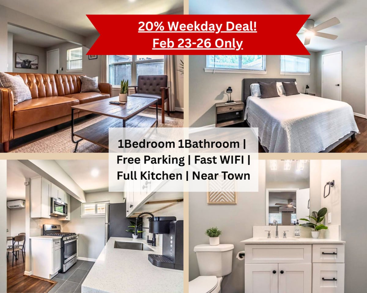 ¡Te damos la bienvenida a tu retiro en Montrose! Este loft de 2 dormitorios/1B cuenta con cómodas camas tamaño king, estacionamiento gratuito y wifi rápida. Relájate en la acogedora sala de estar con dos sofás, TV y zona de trabajo. Disfruta del patio privado o cocina en la cocina completa con una estufa de gas. Situado en el corazón de Houston, estás a pocos minutos de los mejores restaurantes, bares, museos y estadios. Ya sea que estés aquí para explorar o relajarte, ¡te encantará el espacio luminoso y acogedor!