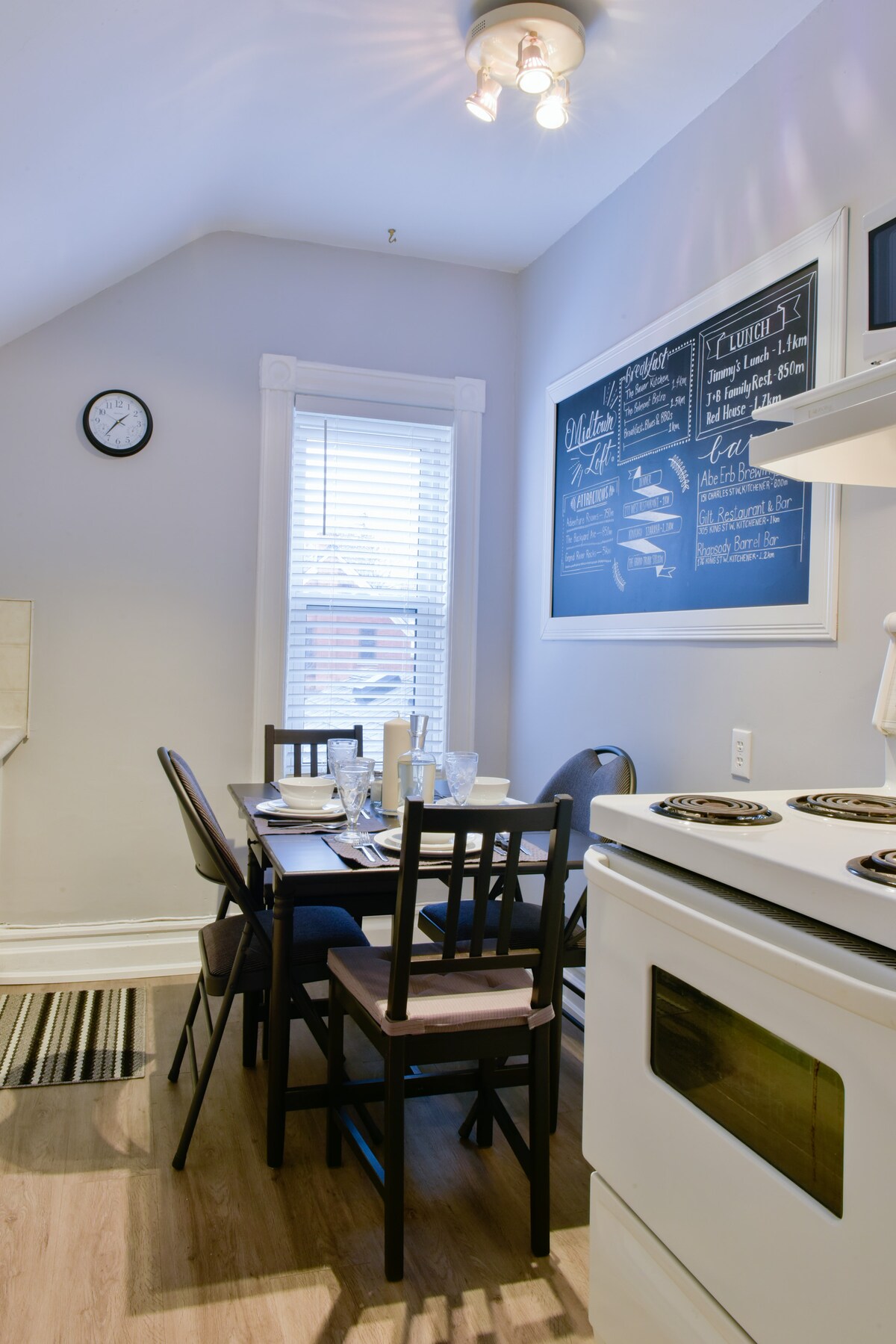 Un alojamiento acogedor en la planta baja de una casa centenaria. El espacio tiene mucho carácter y se ha actualizado recientemente con muchas características elegantes y modernas. Disfruta de la comodidad y la comodidad, ya sea que viajes por trabajo o por placer. Situado en las afueras del centro de Kitchener, estamos a 5 minutos a pie de la estación de tren GO, bares y restaurantes, oficinas de Goo/GLE y LRT. El barrio es maduro y tranquilo, hogar de muchas familias maravillosas que han vivido aquí durante décadas.