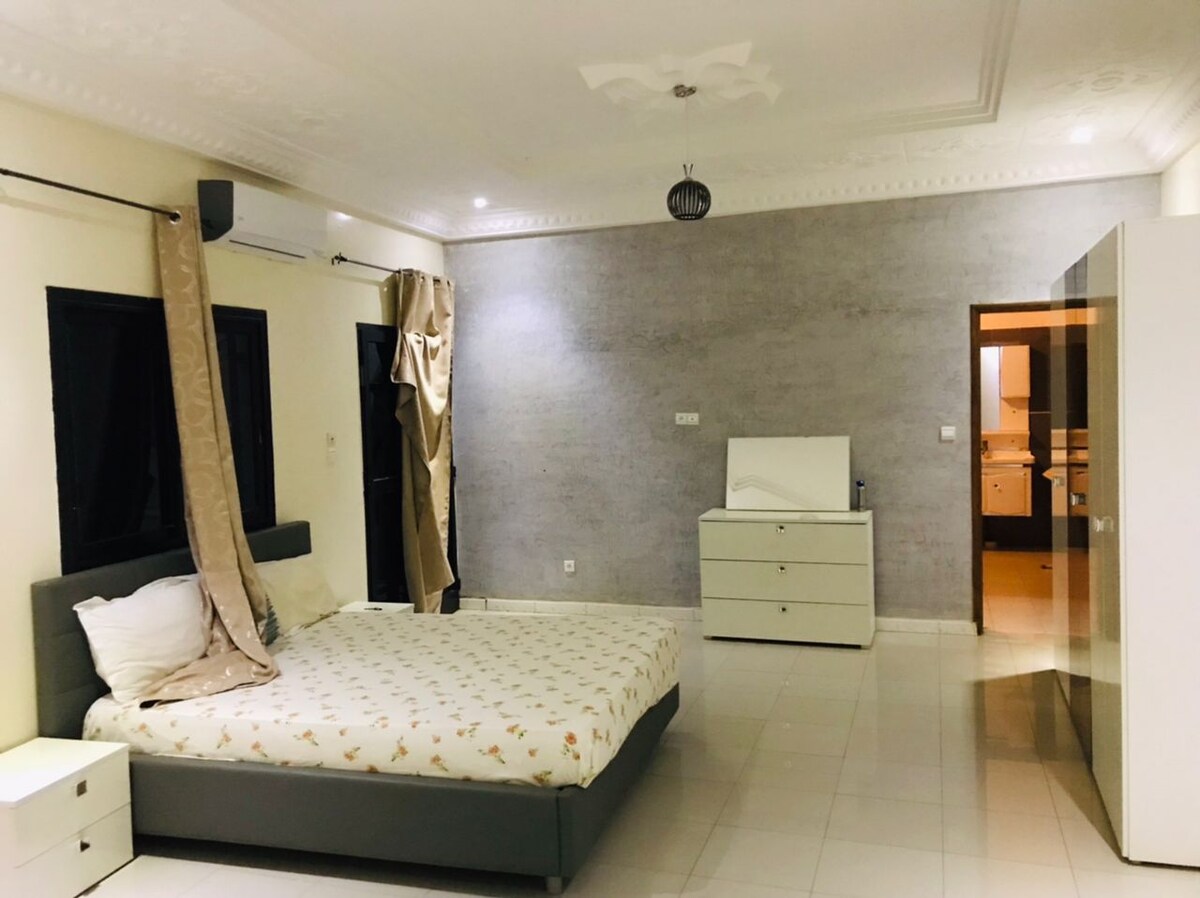 Villa moderna a 15 minutos del aeropuerto, ideal para familias o viajes de negocios. Gran salón luminoso con sofás de cuero, decoración elegante, cocina equipada, wifi, aire acondicionado y aparcamiento seguro. Barrio tranquilo y accesible, cerca de los servicios. Comodidad, serenidad y practicidad reunidas en Thiès. ¡Reserva ahora!