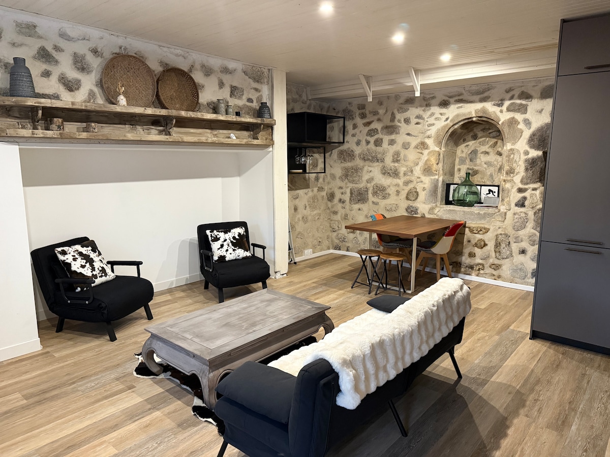 Venga a pasar una semana o un fin de semana de cambio de escenario en nuestro granero autónomo en energía (paneles solares), agua calentada con leña. Entrada individual por el granero En el exterior, a la salida del granero, mesa y bancos para disfrutar del exterior y de la vista impresionante de los Montes del Cantal Estudio de 20 m² adyacente a nuestra casa para 4 personas (posibilidad de 6 máx.)