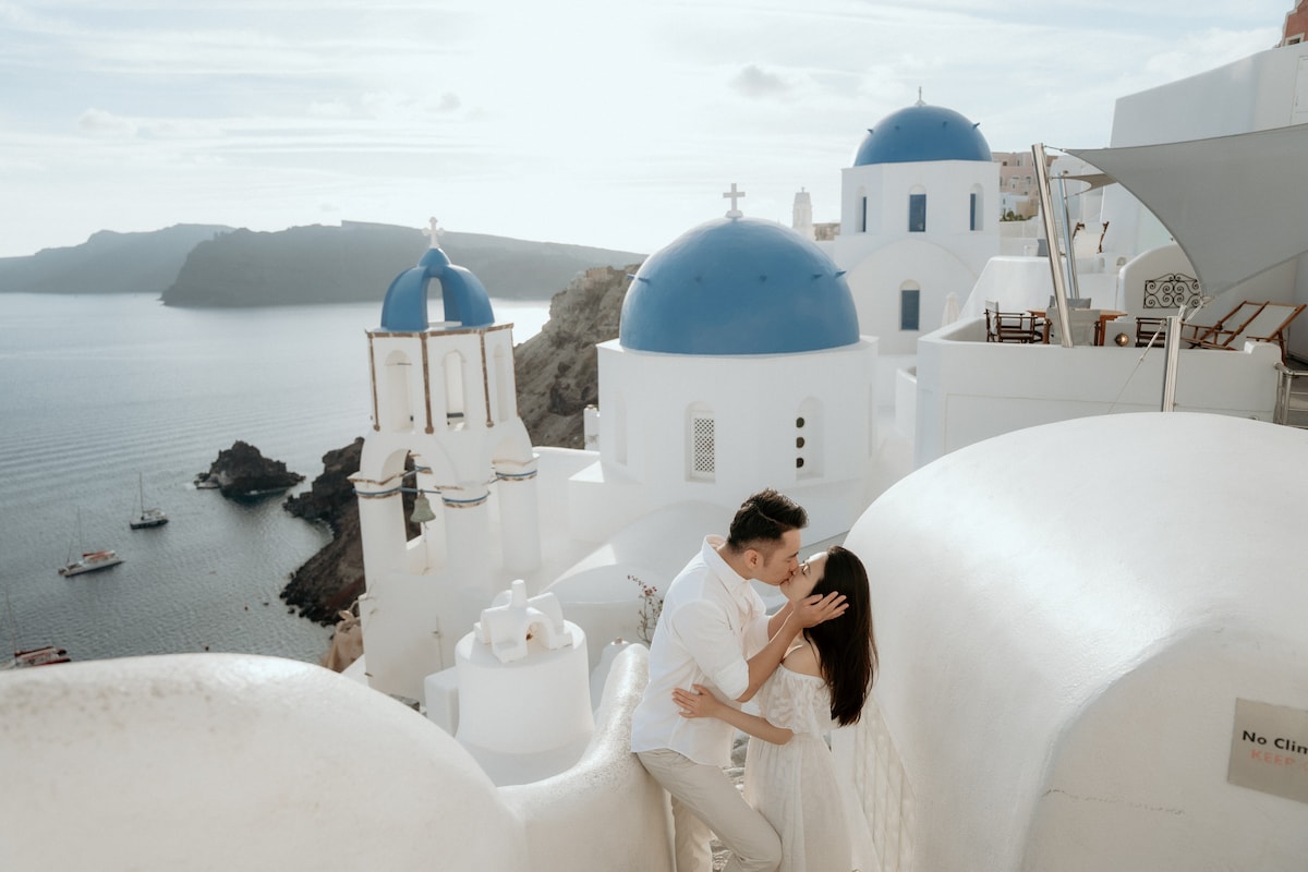 Sesión de fotos para parejas en Oia, Santorini, por Gerald