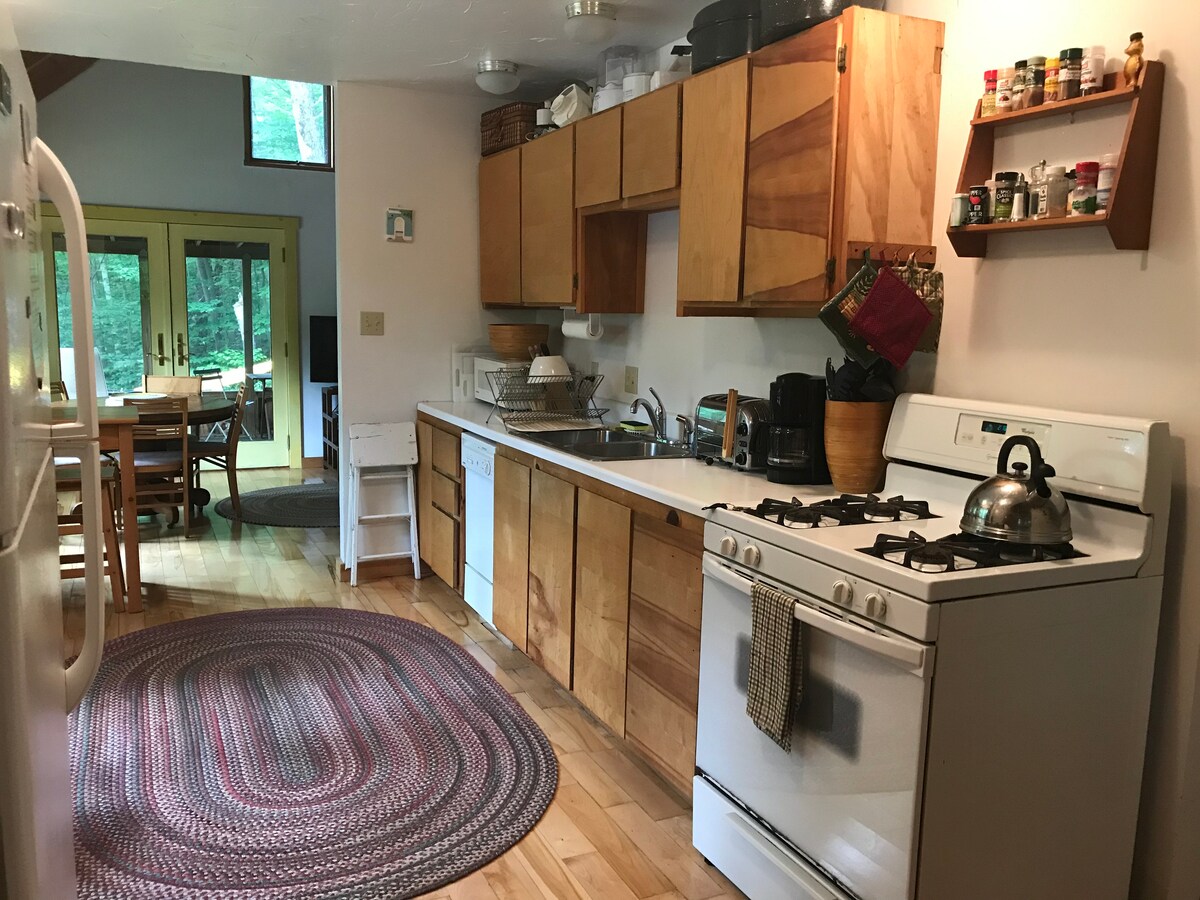 La cabaña «Mellow Moose» es un refugio tranquilo y apacible escondido en el bosque. Pase el día explorando la región o simplemente relajándose en la naturaleza. Las tardes son ideales para leer un libro mientras el sol entra por los grandes ventanales de la sala de estar. Relájese en el porche cerrado con mosquitero para disfrutar de una noche tranquila y de una bebida. O bien, disfrute de una fogata y contemple la puesta de sol entre los árboles. Utilice este alojamiento como base para un viaje de esquí o como punto de partida para explorar el lago Schroon, el lago Brant o el lago George. (Aproximadamente 30 minutos)