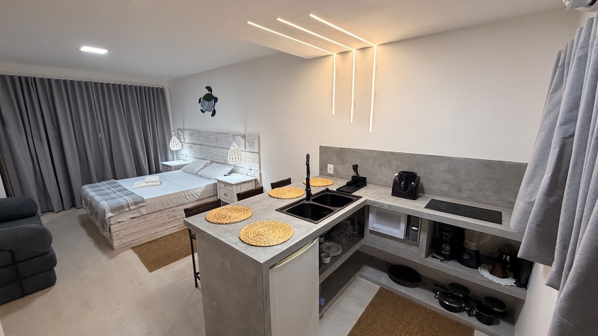 Excelente Kitnet inserida em uma das melhores pousadas de Pipa, próxima da Praia do Amor e do Centro aqui você faz tudo a pé farmácias, mercados, pararias a menos de 100 metros. O chalé disponibiliza de uma cozinha equipada com geladeira, fogão elétrico, microondas, cafeteira, liquidificador e todos os utensílios de cozinha. Tem ferro de engomar e secador de cabelos. Venha desfrutar de momentos inesquecíveis!