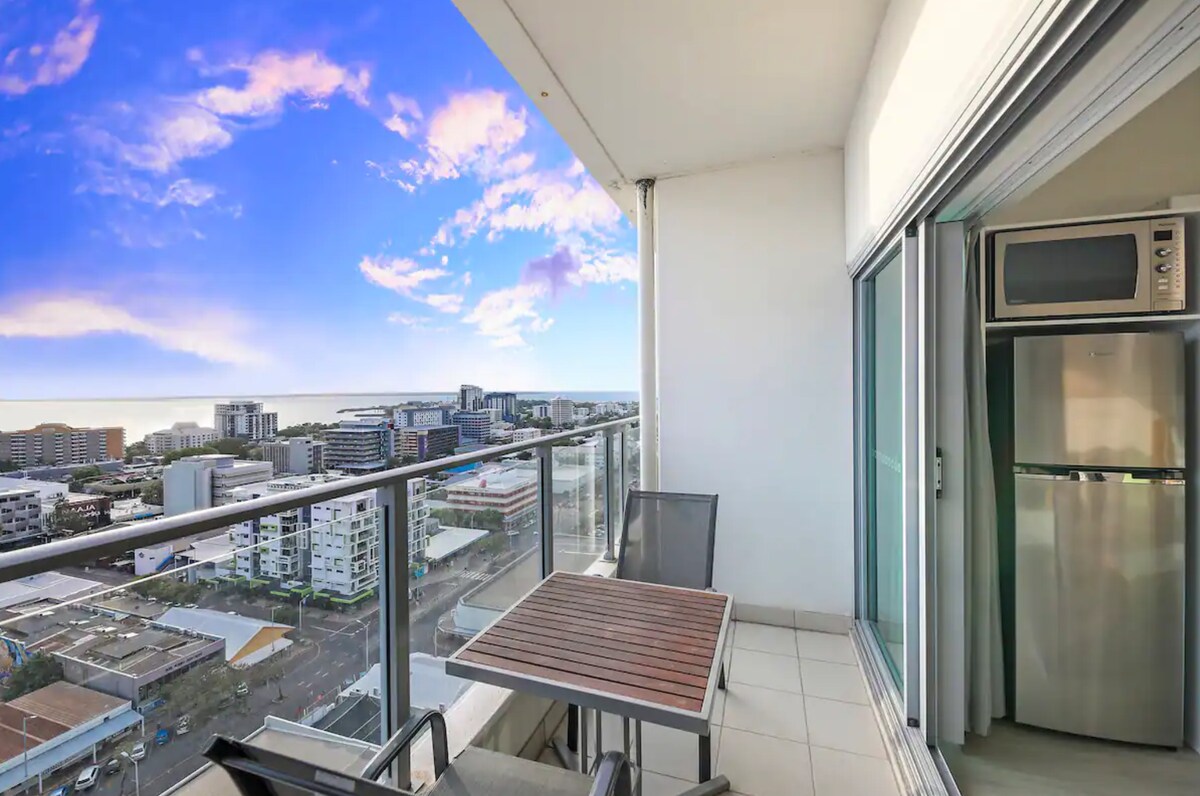 Un apartamento moderno y bien equipado en el centro financiero, que atiende adecuadamente tanto a huéspedes corporativos como a familias. Convenientemente ubicado a pocos pasos de supermercados, bares, restaurantes, farmacias y tiendas minoristas. Relájate en el balcón mientras se pone el sol y observa cómo las luces y la ciudad cobran vida. Alójate cerca de los lugares de entretenimiento de Darwin, como el recinto de Waterfront, la playa de Mindil, el casino y los jardines botánicos.