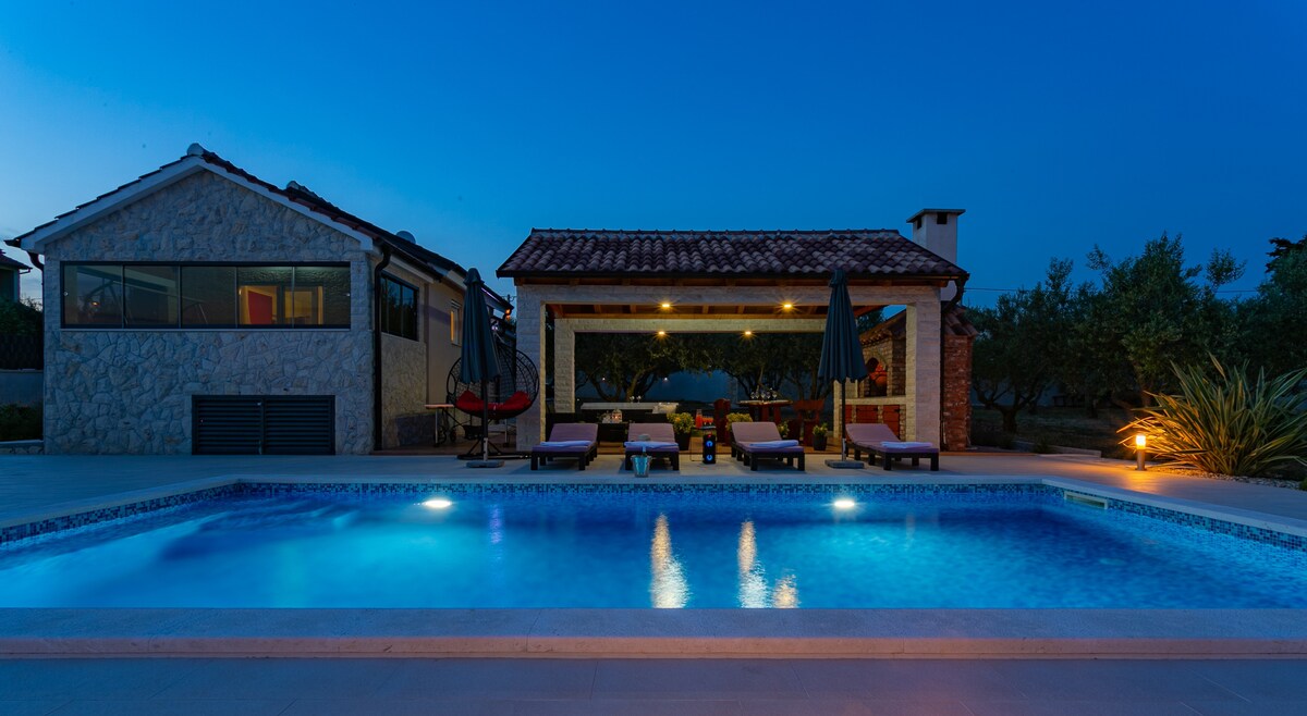 Disfruta del auténtico ambiente rural rodeado de olivos y viñedos. Nuestra casa familiar se encuentra en una finca privada donde producimos aceite de oliva y vino. La casa se encuentra en el tranquilo pueblo de Raštane Gornje, a 12 km de la ciudad de Biograd y de la popular playa de arena «Soline». La casa es una combinación de encanto rural y confort moderno: piscina, jacuzzi, billar, gran jardín con espacio para el descanso, barbacoa al aire libre, viñedo, cerezos e higueras, más de 60 olivos, flores y hierbas mediterráneas.