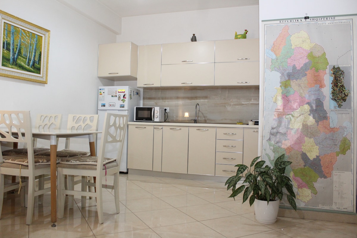 Benvenuti nel nostro appartamento situato vicino al vivace centro di Tirana! Questo spazio affascinante vanta abbondante luce naturale, che illumina i suoi arredi e crea un'atmosfera calda e invitante. L'appartamento dispone 2 camere da letto ,bagno elegante, una cucina completamente attrezzata e un accogliente soggiorno per rilassarsi dopo una giornata trascorsa esplorando la città. Situato in una posizione privilegiata, ti ritroverai a pochi passi dalle vivaci strade di Tirana.