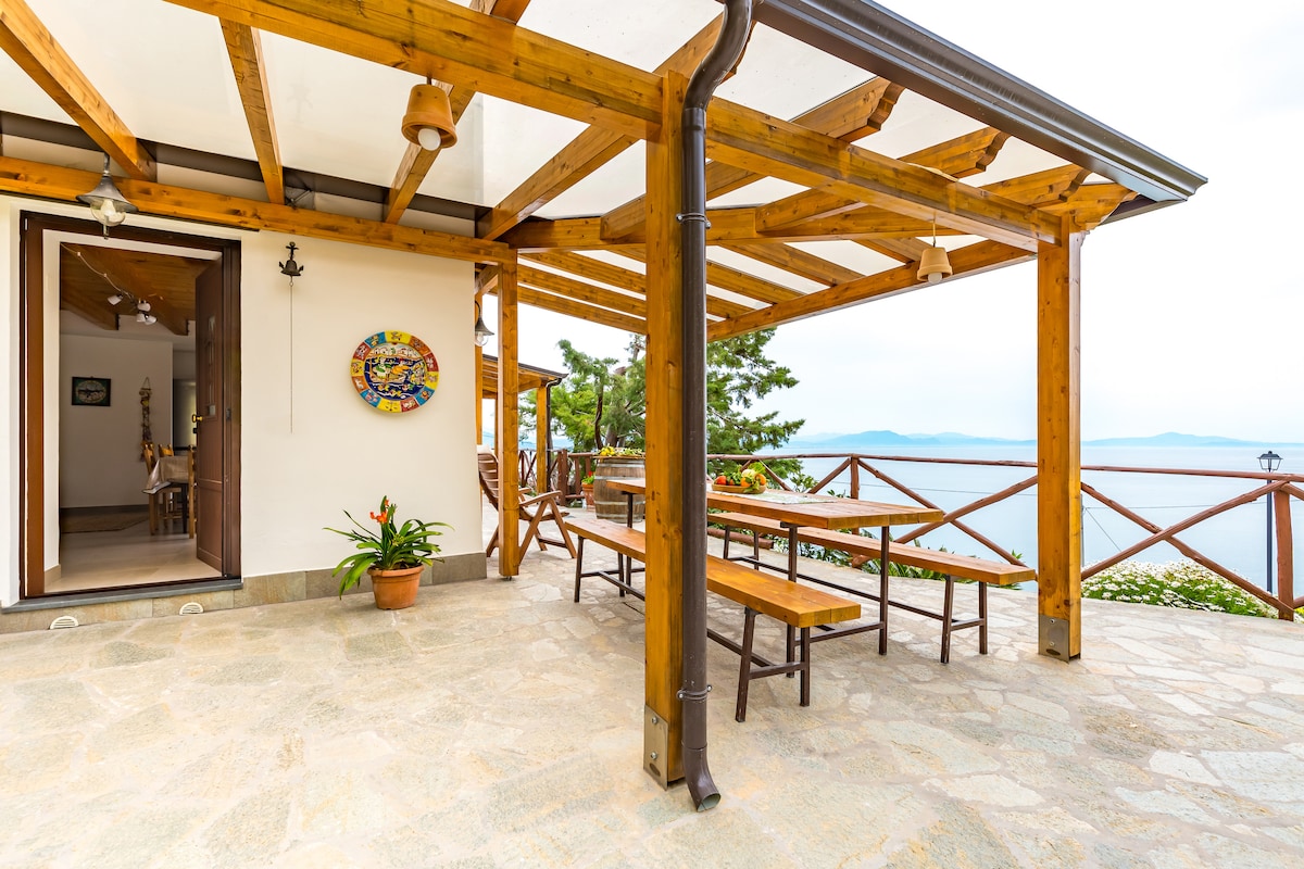 Villa con terraza, vistas al mar, acceso a la playa y aparcamiento gratuito.