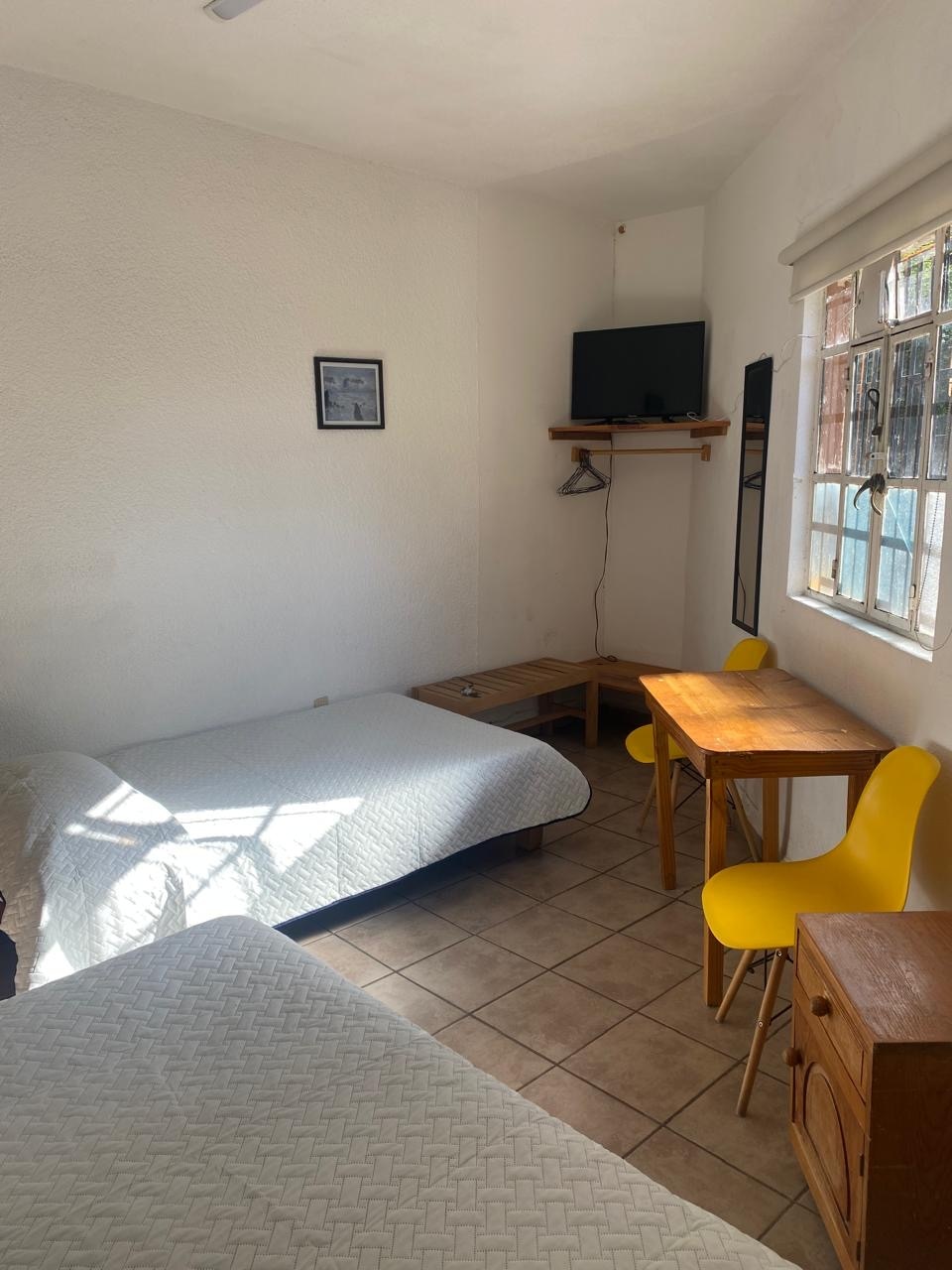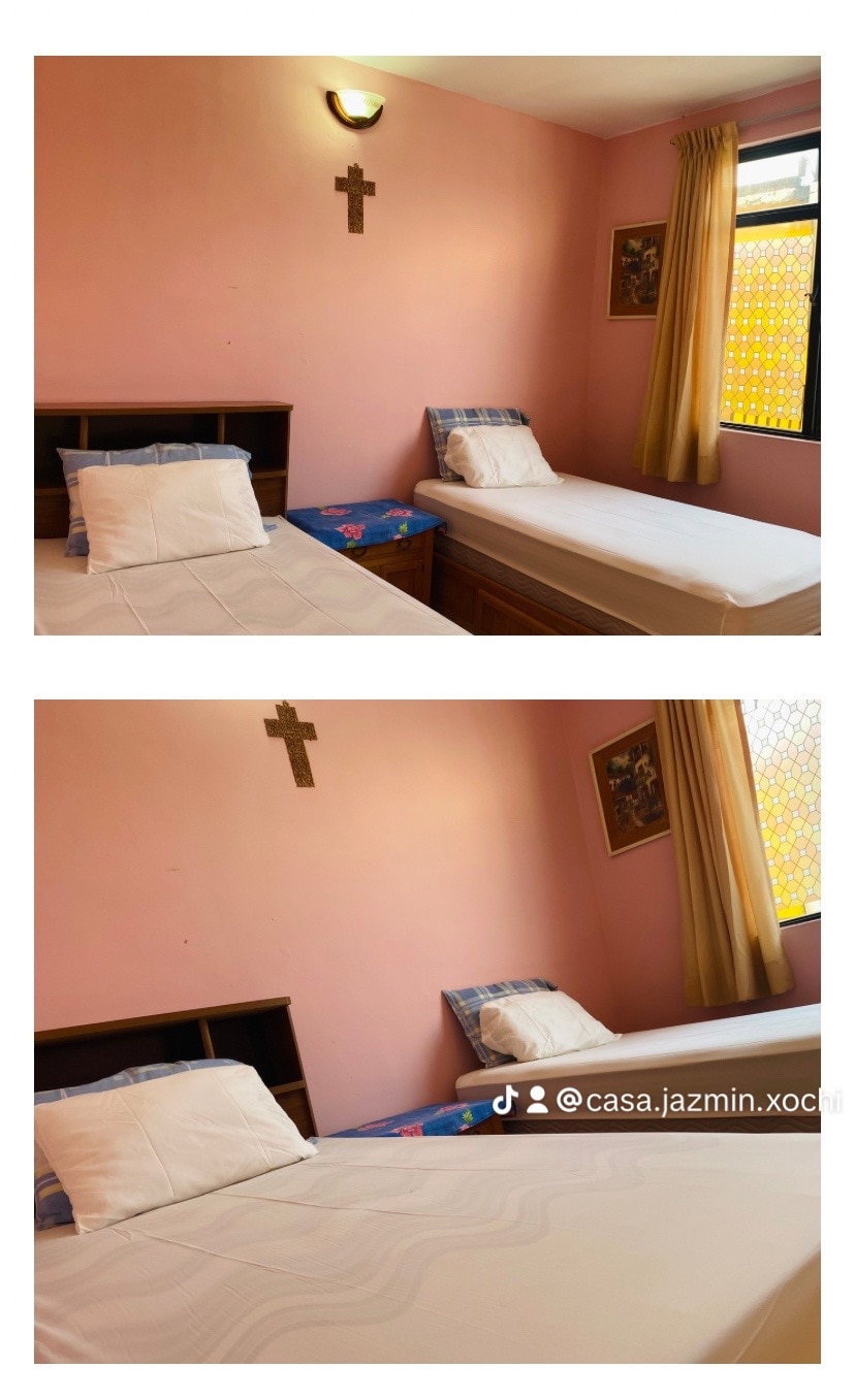 Disfruta la acogedora y amplia habitación de este agradable alojamiento. Un habitación con dos camas individuales, con capacidad máxima de dos personas, con baño completo independientemente, áreas comunes como pasillos y cocina con todos los utensilios necesarios para cocinar, dentro de una casa de un solo nivel. Un alojamiento agradable y tranquilo con gran ubicación, a 10 minutos de zona de hospitales y el centro de Tlalpan. Con transportes públicos cercanos.