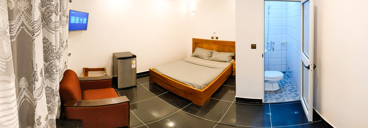 Villa Rehoboth. Logement calme et élégant dans une belle maison moderne avec piscine et 5 chambres spacieuses et confortables. Cette offre est pour une chambre avec accès aux parties communes. Elles ont toutes des salles de bain privées et sont équipées de TV, de place de travail et climatisation. La maison offre un espace vert, un espace de relaxation sur le toit avec une place de fête (arrive bientôt). Située dans le nouveau et calme quartier de AGOE , à 30mn de l'aéroport et 3km du centre.