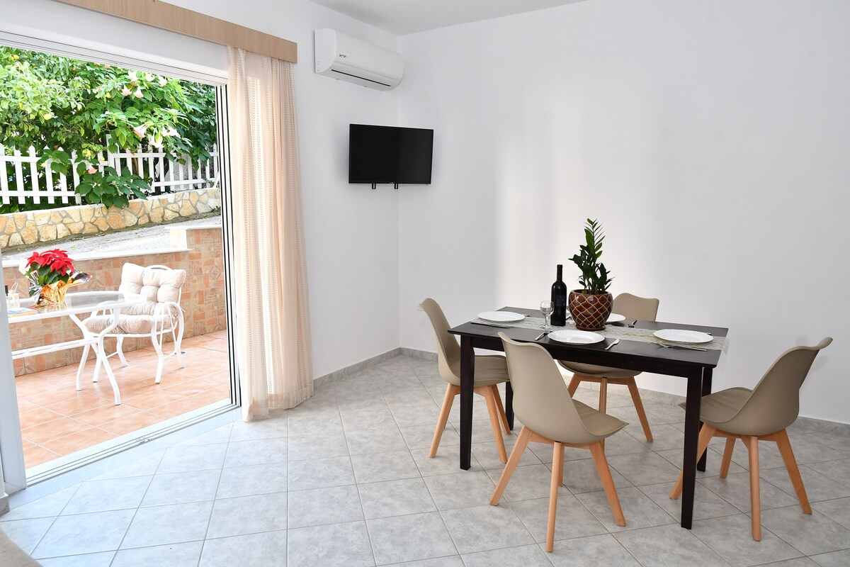 Nuestro apartamento es NUEVO, renovado en junio de 2025. Hay un dormitorio con una cama doble súper cómoda y una cocina nueva donde puedes encontrar todo lo que quieres cocinar para tu almuerzo/cena/desayuno. El apartamento tiene una decoración moderna y los clientes pueden relajarse durante sus vacaciones. Hay aparcamiento gratuito en la calle justo delante de la puerta del apartamento. A solo 800 m (10 minutos a pie) del centro de Naplio, a 1 km (15 minutos a pie) de la plaza Sintagma y a 3 km del castillo de Palamidi.