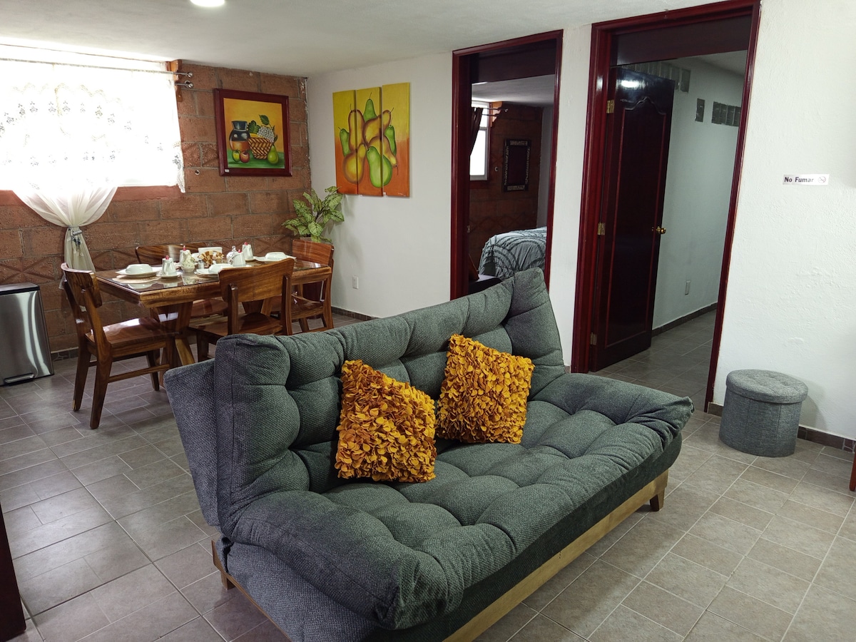 Disfruta de la hermosa terraza de este alojamiento tranquilo y céntrico. Una decoración sobria y discreta que caracteriza sus espacios con diseño minimalista y los pisos de cerámica. Un lugar con plena independencia para disfrutar de gran privacidad. Se encuentra a 2,200 metros del primer cuadro de la Ciudad lo que permite la visita a pie de los lugares más representativos, además de tener una ubicación excelente en caso de requerir ir a la Ciudad de México o moverse a Metepec.